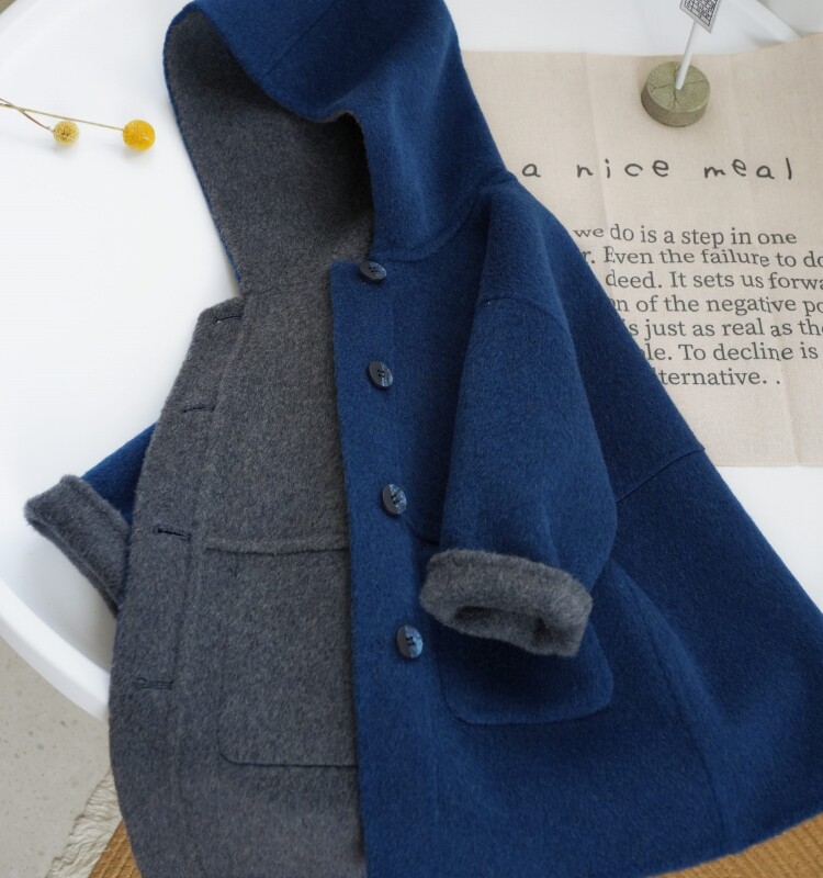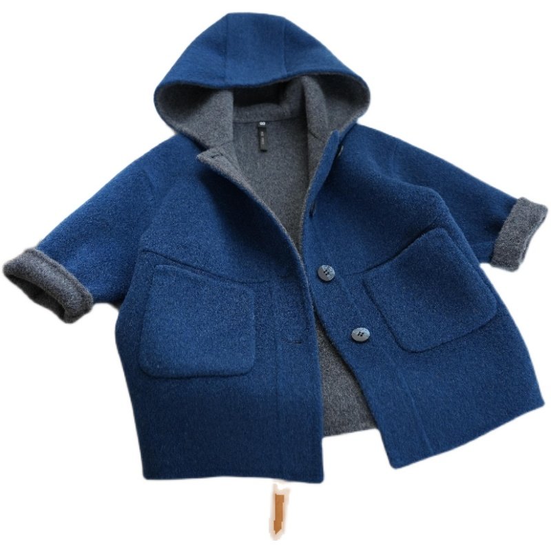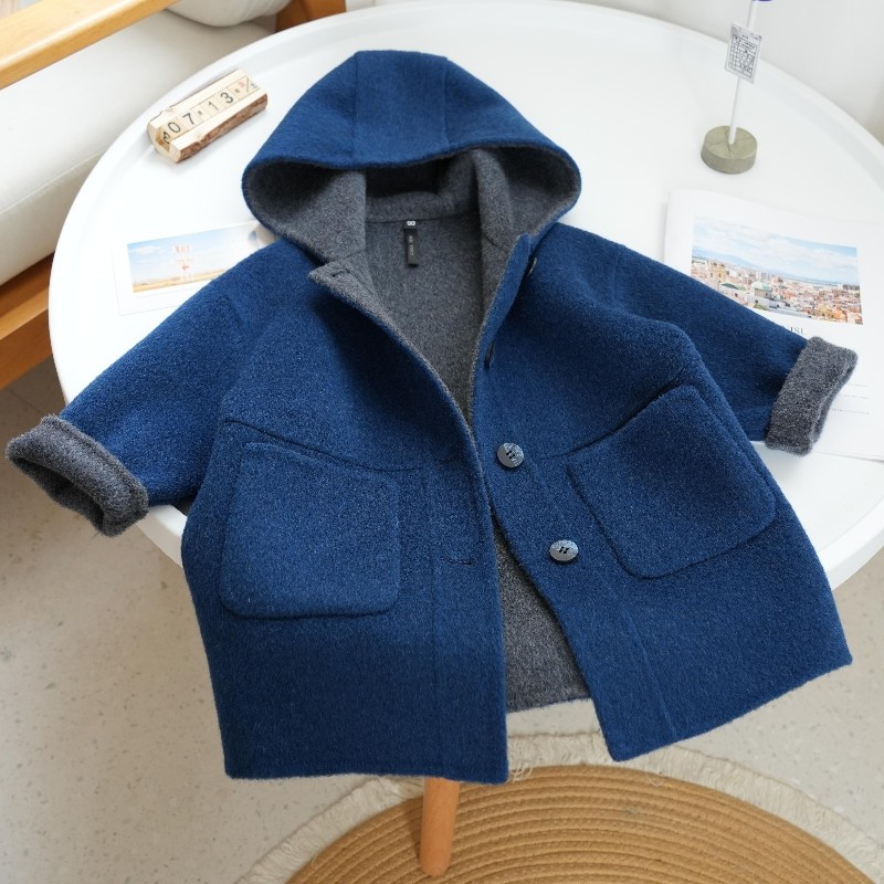 📚 儿童秋冬新款小个子双面羊绒大衣男童女童中长款加厚连帽呢外套韩