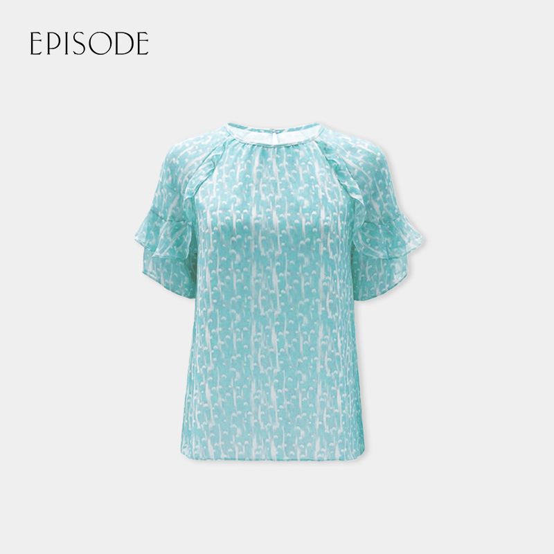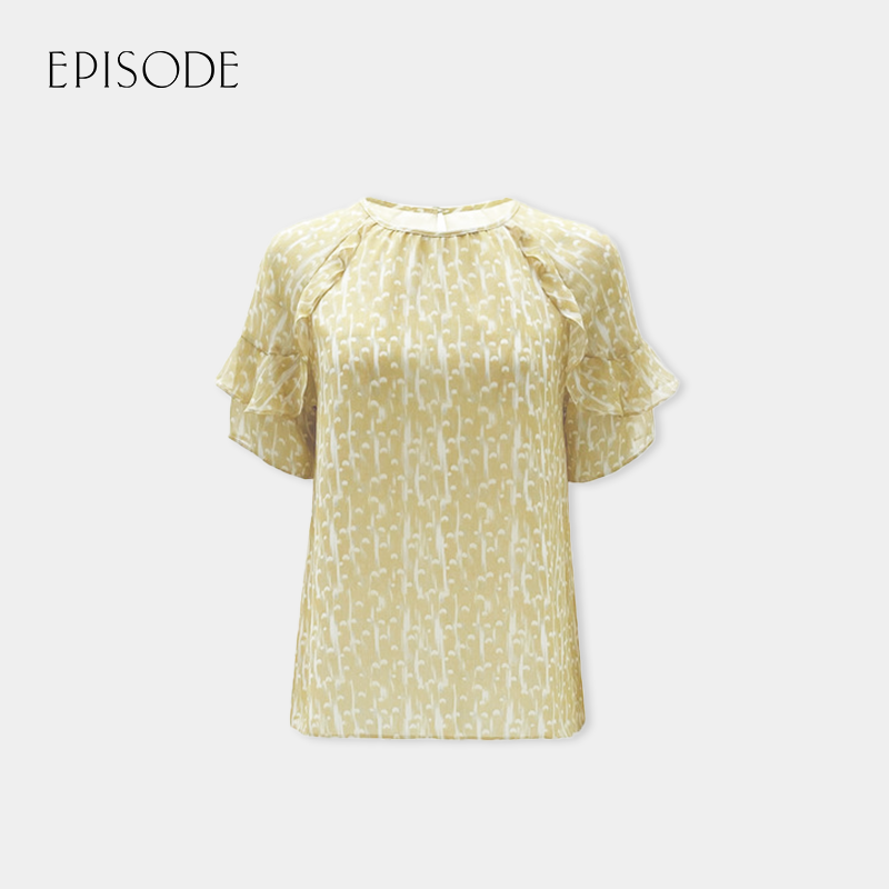 📚 EPISODE艾碧素雪纺衫蓝黄色插肩短袖上衣衬衫113138