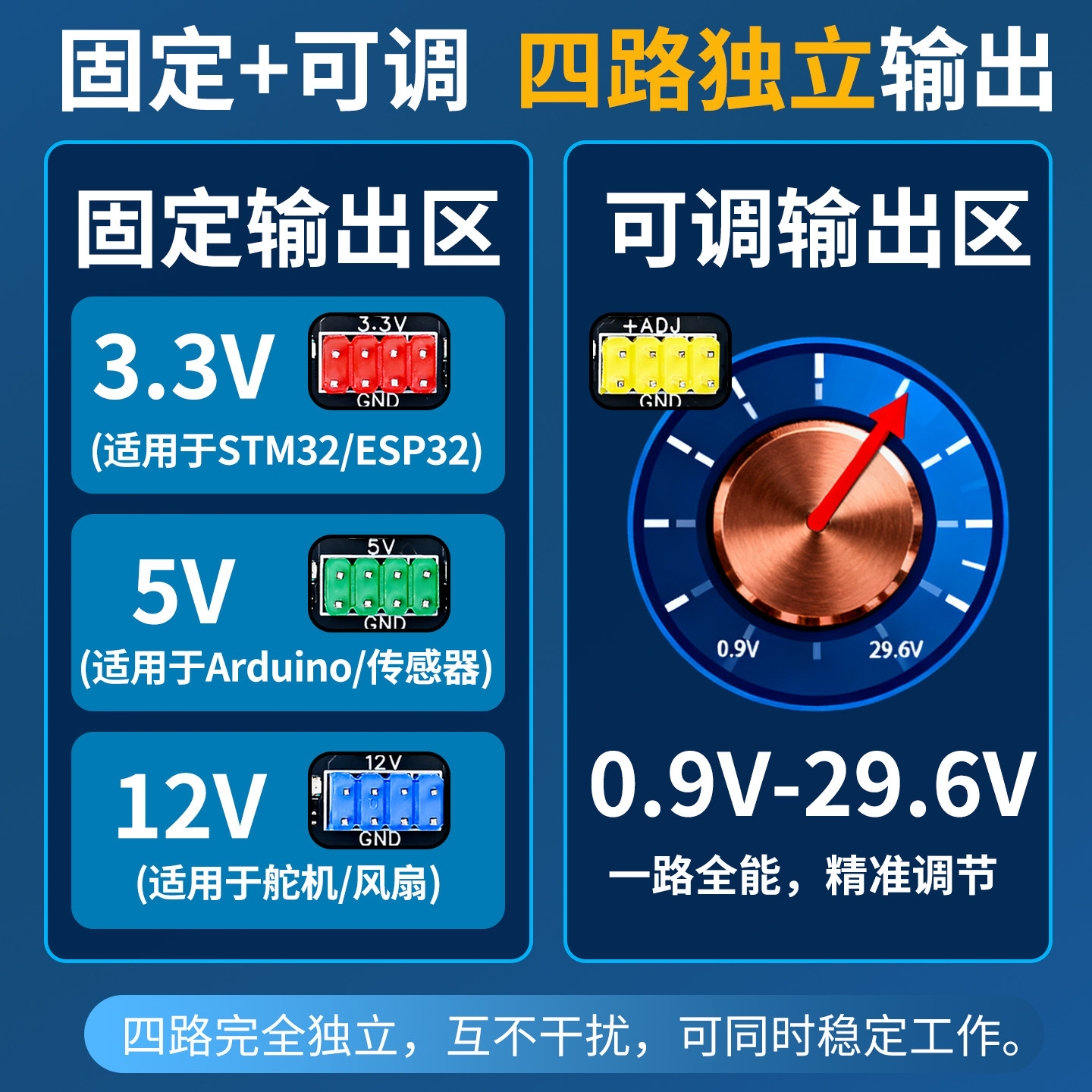 📚 DCP3512四路电源模块转换模块可调宽电压输入电赛实验设备供电板