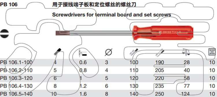 📚 原装进口瑞士PB SWISS TOOLS接线端子用平齐一字螺丝刀PB 106系列