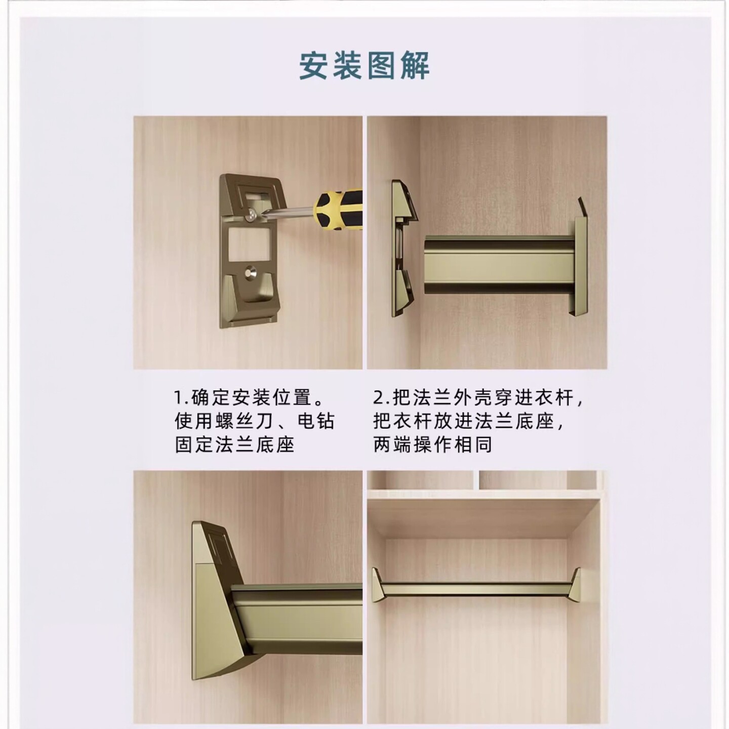 📚 衣柜专用挂衣杆横杆固定托配件法兰座卡扣家用卧室衣柜改造支撑架