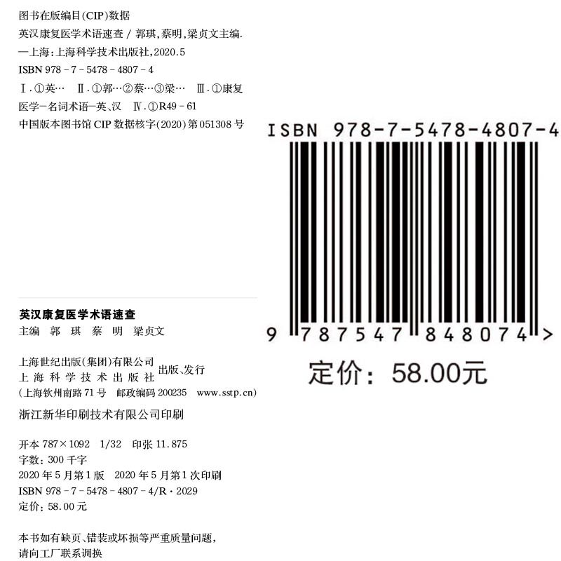 📚 现货英汉康复医学术语速查上海科学技术出版社郭琪蔡明梁贞文英汉对照康复医学康复治疗康复英语实用表达康复实用词条
