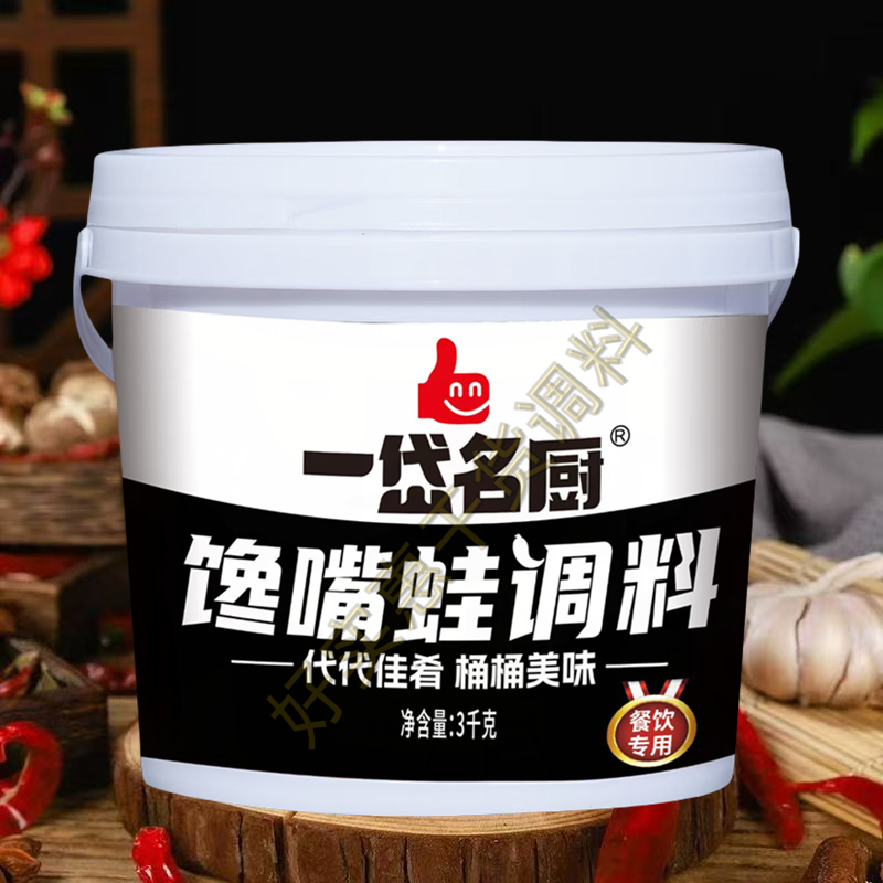 📚 一岱名厨馋嘴蛙调料3kg桶装烧田鸡麻辣牛蛙馋嘴蛙麻辣酱料餐饮装