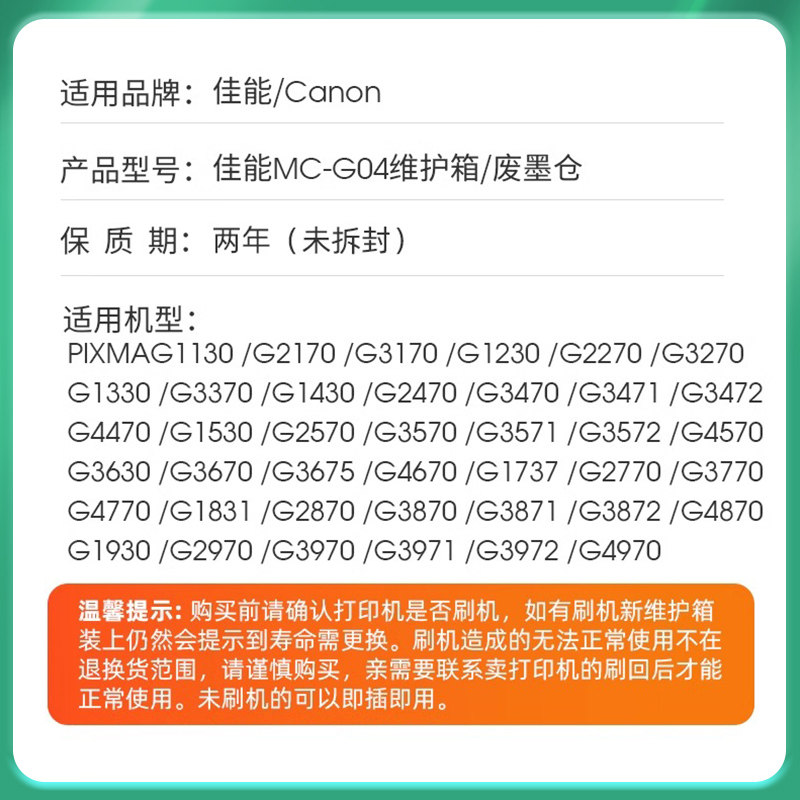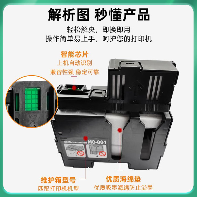 📚 适用佳能MC-G04保养墨盒CANON G1830 G1831 G2870 G2770废墨仓G2970 G3830 3770 3870 3970 4770打印机维护箱