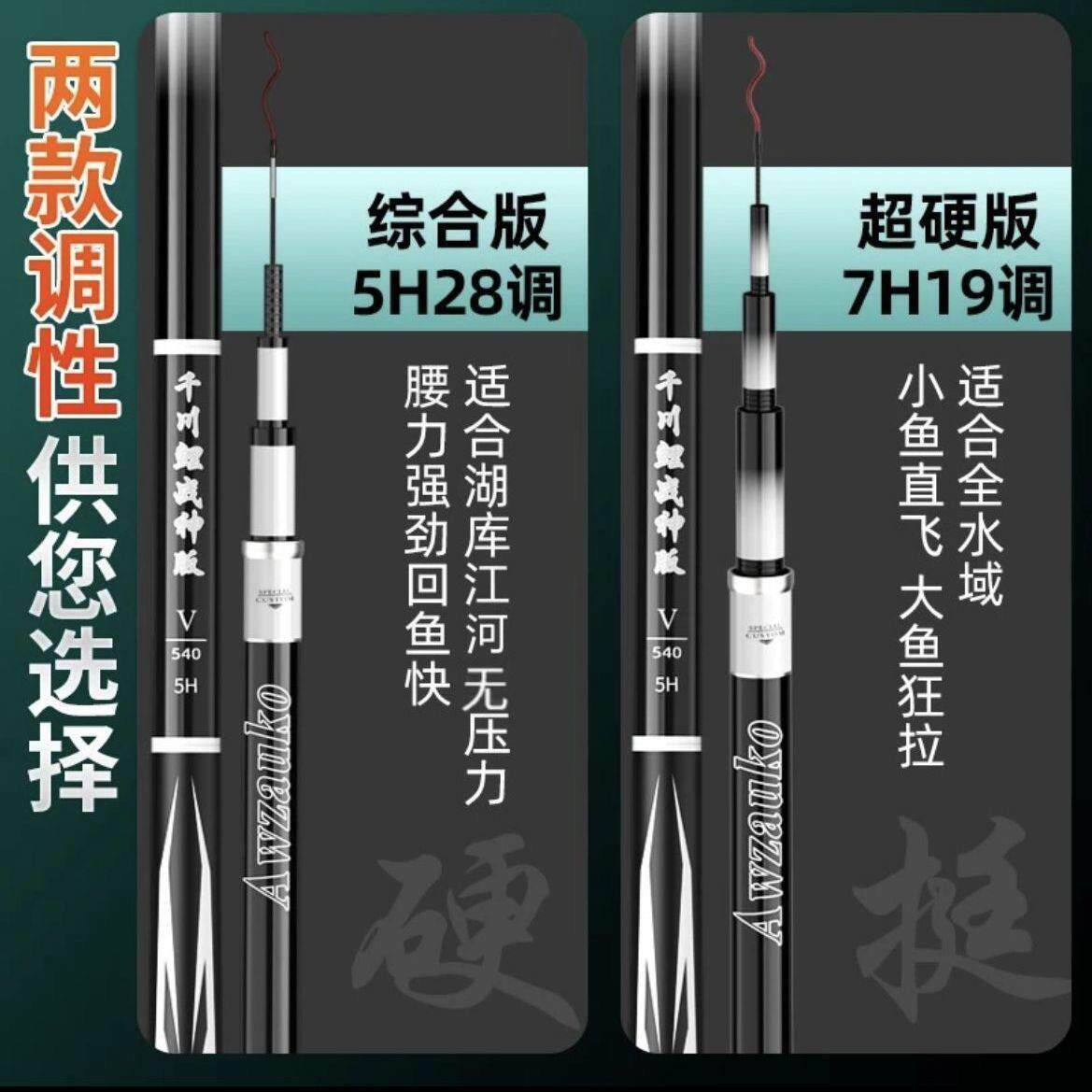 📚 千川鲤战神版台钓鱼竿5代6超轻超硬28调19长节手竿炮竿打窝杆大物