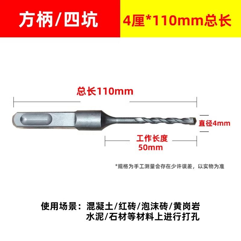 📚 【下单立减50】4mm冲击钻头4厘电锤钻头圆柄两坑两槽方柄四坑钻头