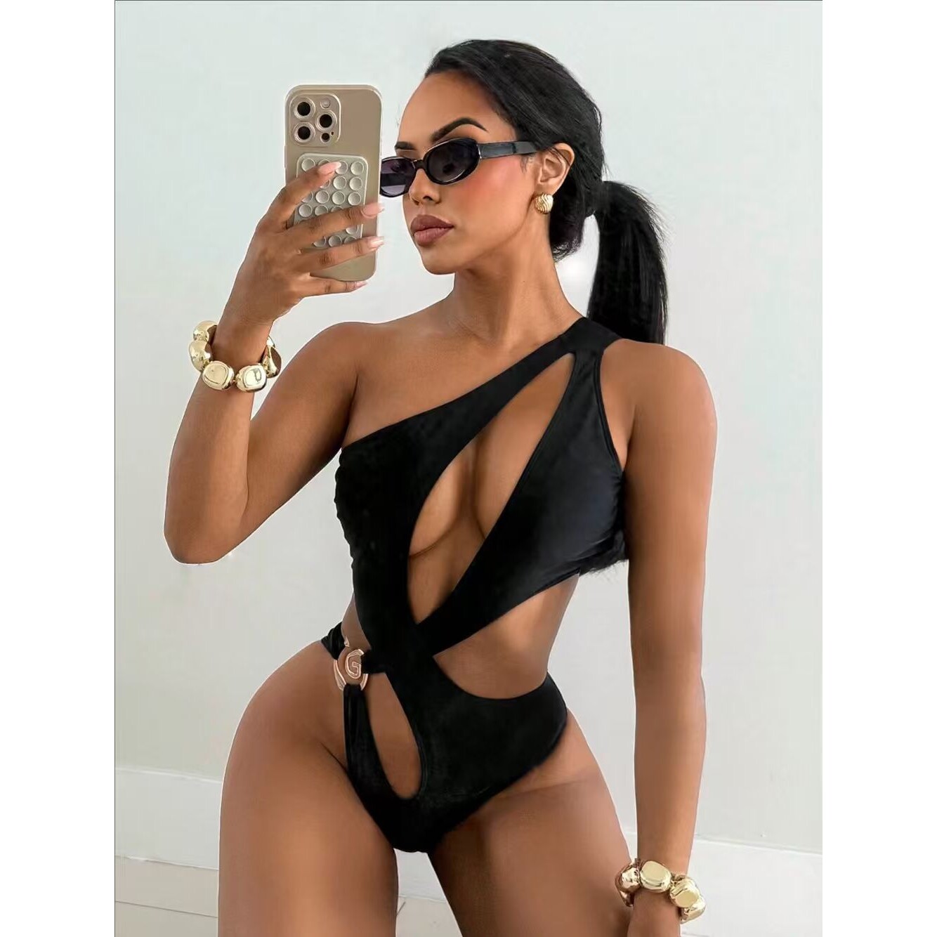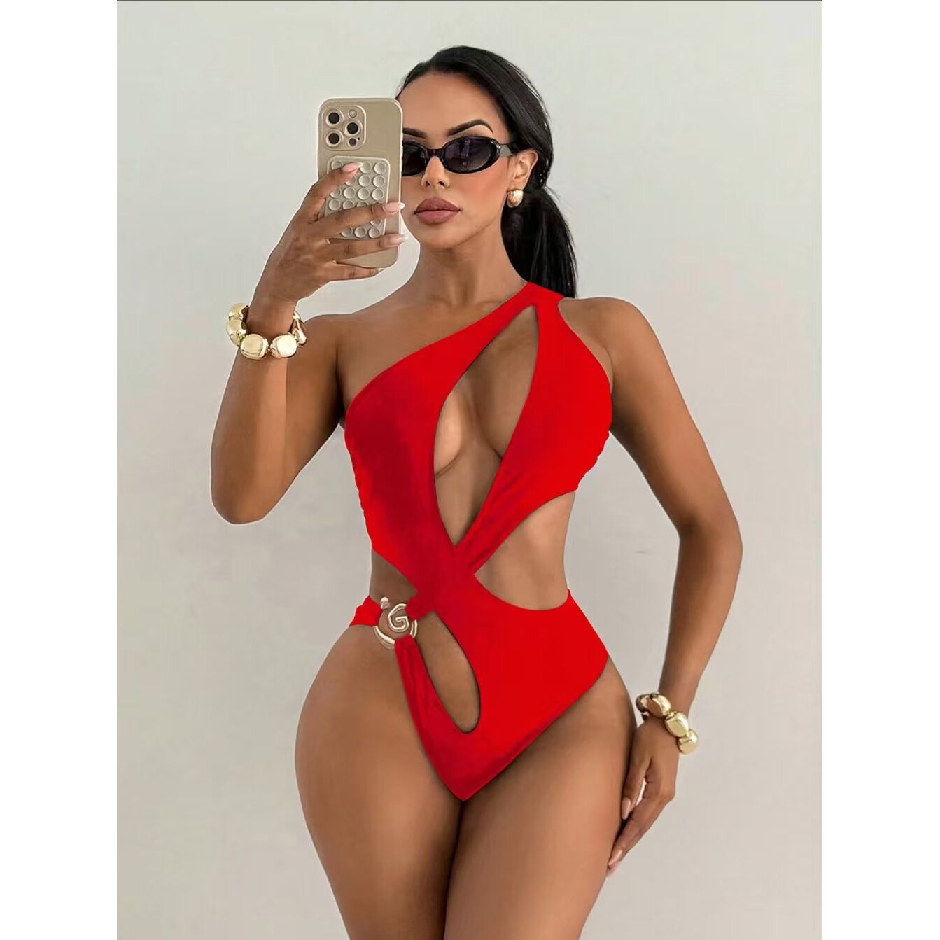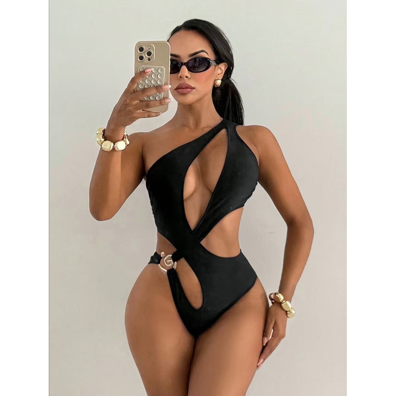 📚 泳衣纯色连体镂空性感比基尼bikini One-piece swimming suit