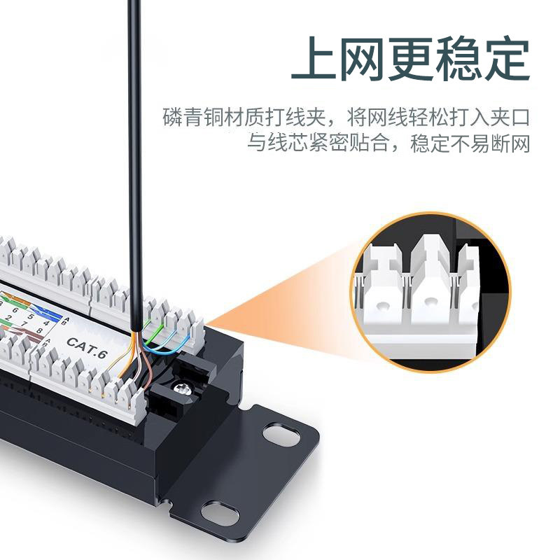 📚 绿联24口48网络配线架超五cat5/6六类千兆非屏蔽rj45网线机柜跳线模块19英寸服务器机架式1U理线槽架配打线刀