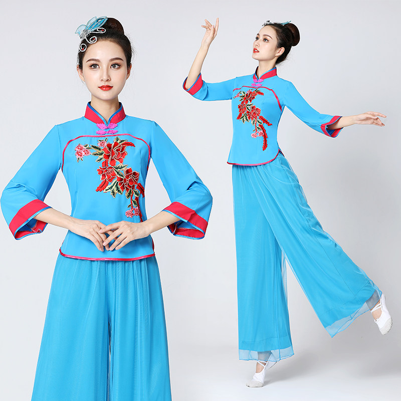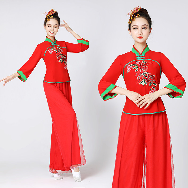 📚 秧歌服女新款套装中老年扇子舞蹈演出服腰鼓队广场舞服装跳舞衣服
