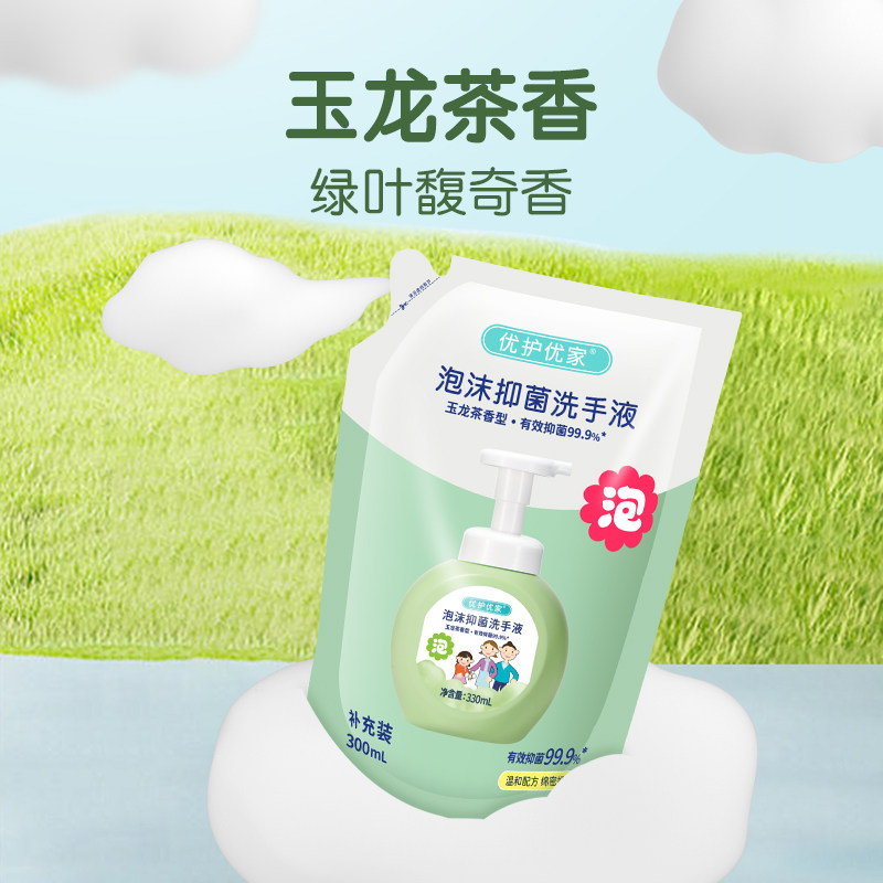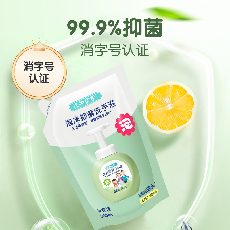 📚 优护优家泡沫抑菌洗手液补充装家用儿童泡泡替换装袋装滋润不伤手