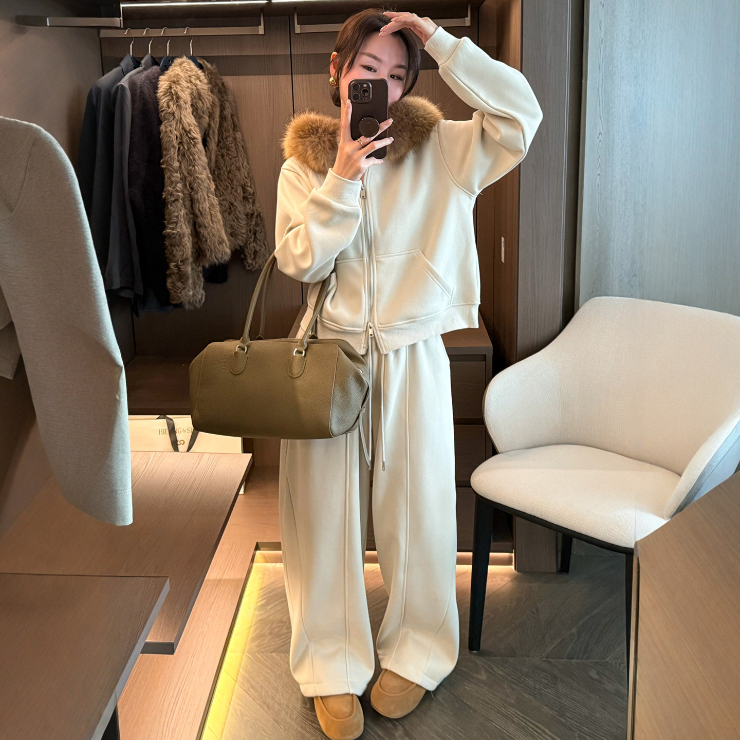👋大家好,今天我要给大家分享一款超级心水的冬装新品——狐狸毛领羊毛呢加绒卫衣两件套装!👏👏