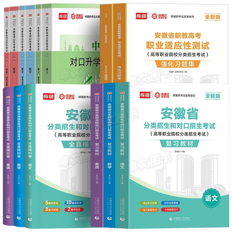 📚 安徽省2026年分类招生和对口招生考试总复习教材书真题试卷资料中职生升学中专升大专职高高考高职单招考试模拟卷数学英语语文2025