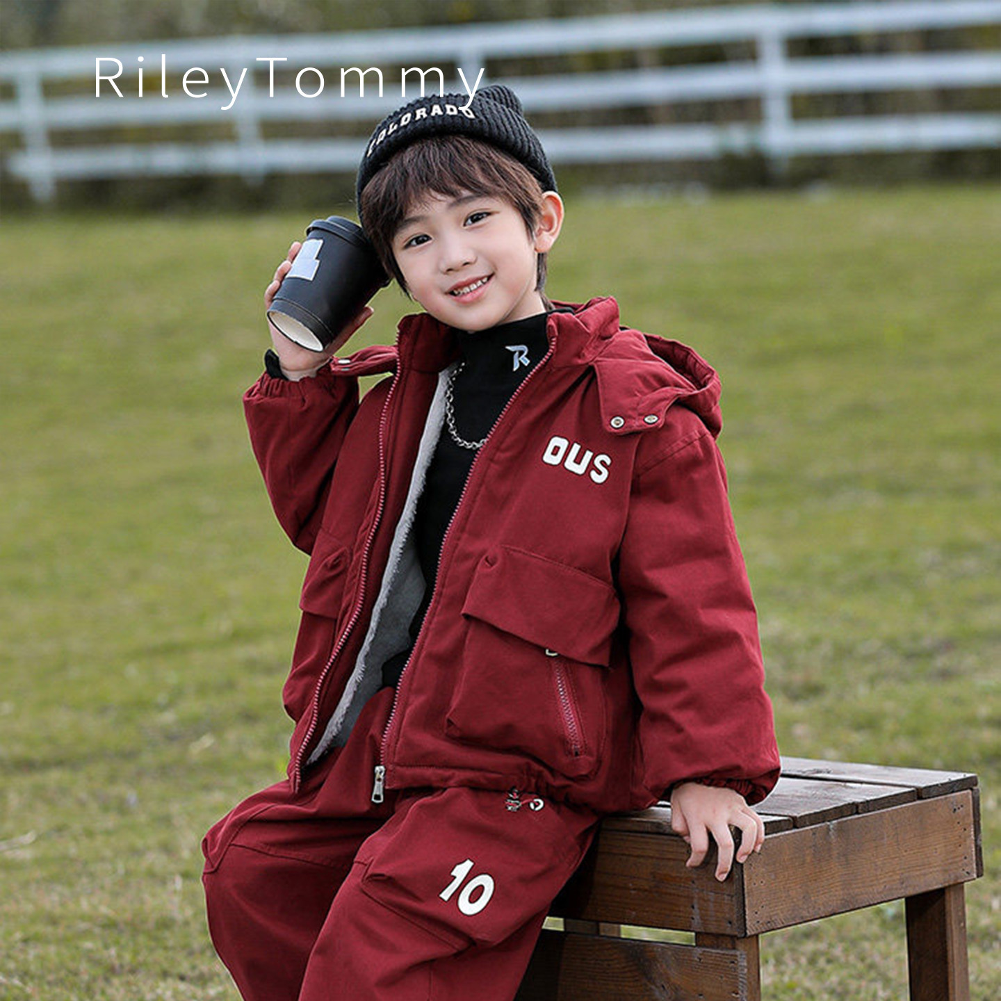 📚 英国Riley Tommy男童棉服套装2025新款冬装加绒加厚红色过年衣服
