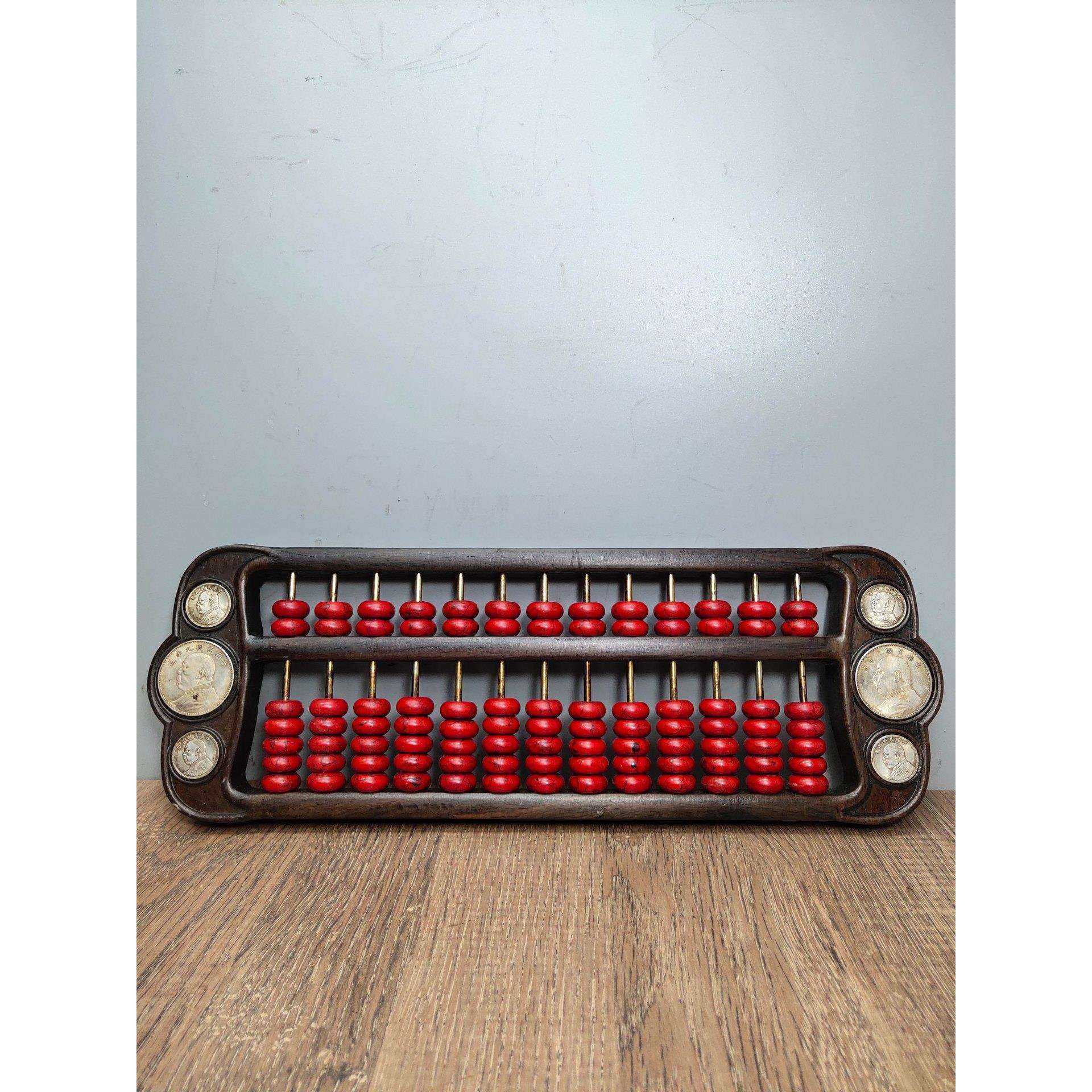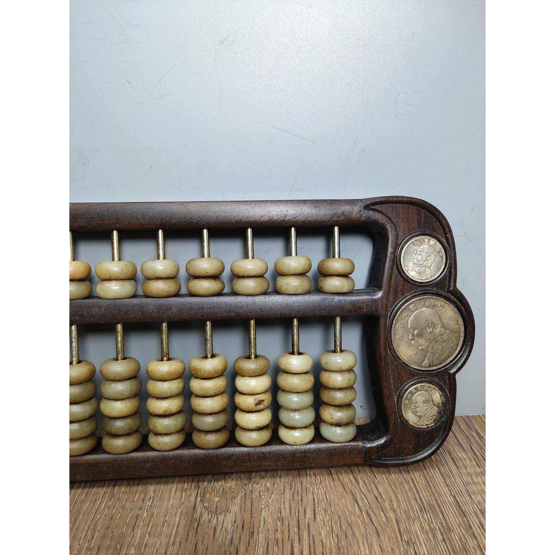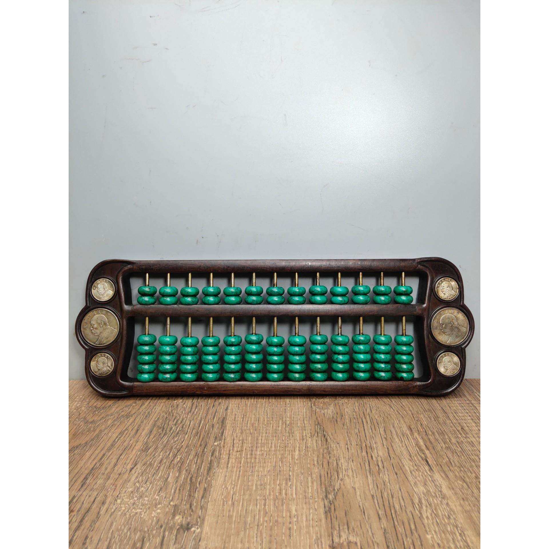 📚 古玩杂项收藏做旧花梨木袁大头银元绿色红色岫玉算珠摆件