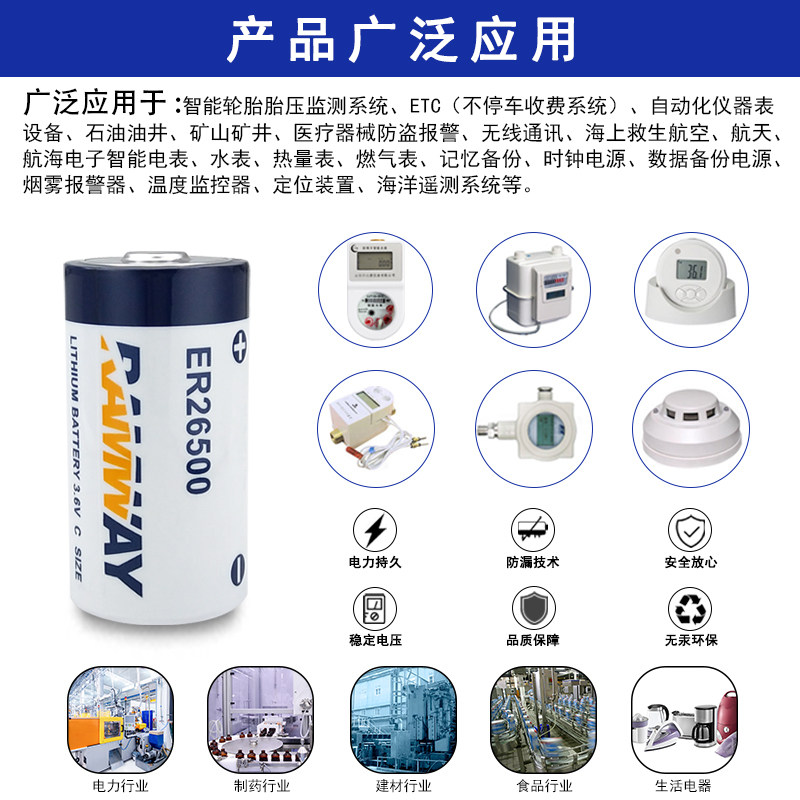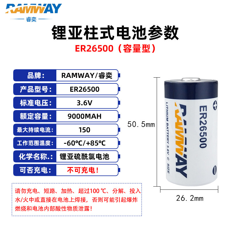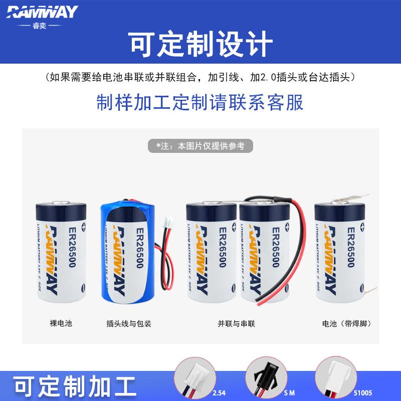 📚 睿奕ER26500锂电池3.6V 燃气表智能水表流量计2号C型可定制电池组