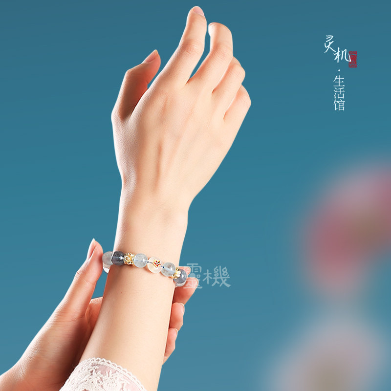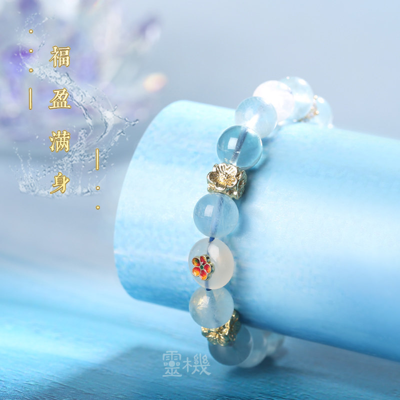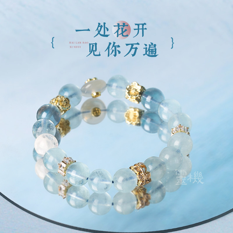 📚 灵机麦玲玲【喜水】海蓝宝白幽灵四方有钱花手链水晶多宝手串