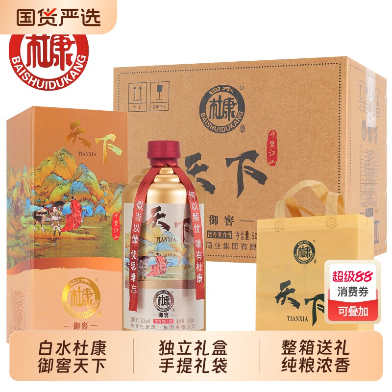📚 白水杜康御窖天下52度浓香白酒礼盒礼袋送礼送老丈人宴会整箱酒业