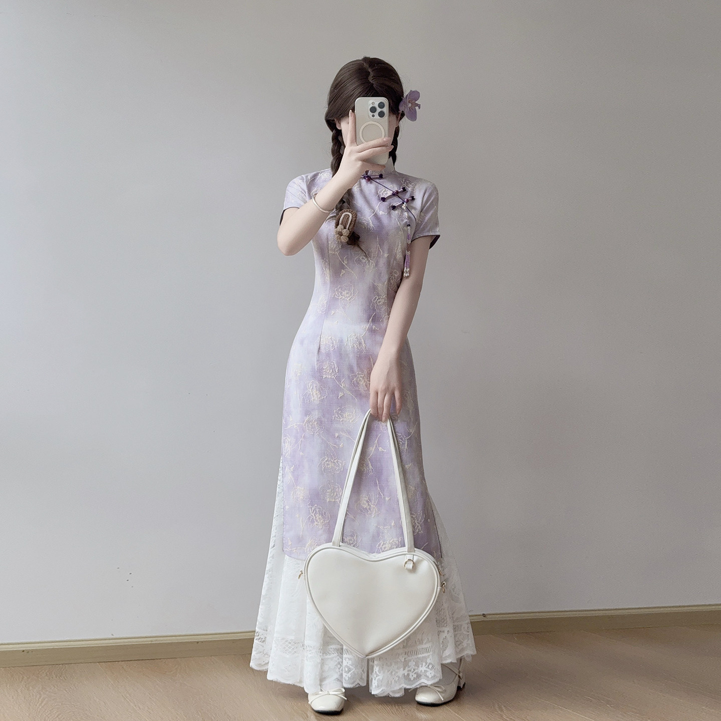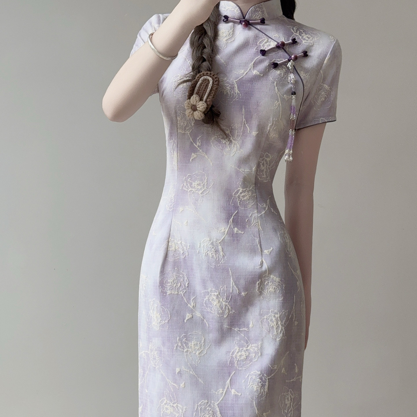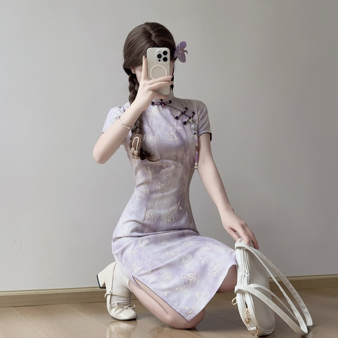 📚 忆南栀紫色新中式旗袍女小个子短款夏季2026新款特别漂亮的掐腰