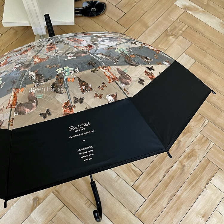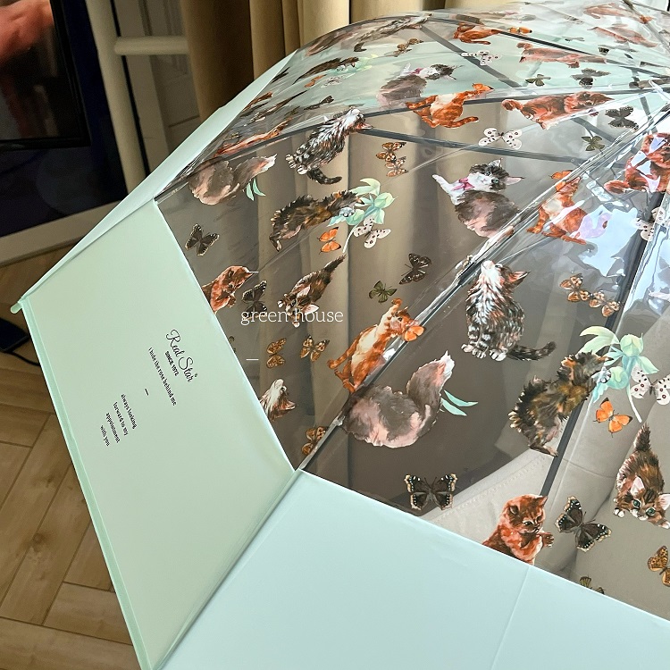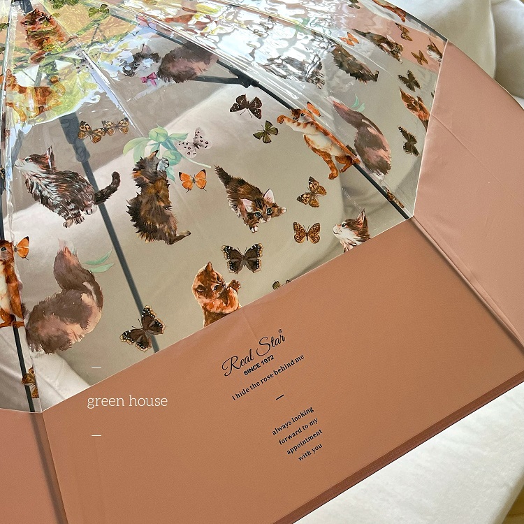 📚 green house * 复古油画猫咪透明长柄自动伞
