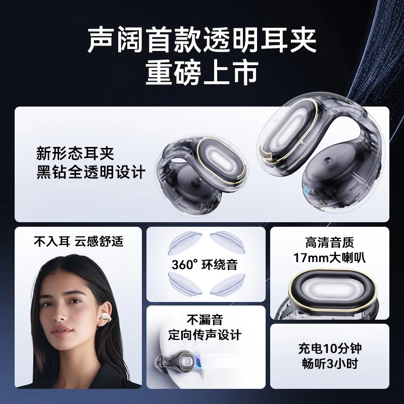 📚 声阔C30i太空舱耳夹式蓝牙耳机不入耳无线挂耳式运动户外超长续航