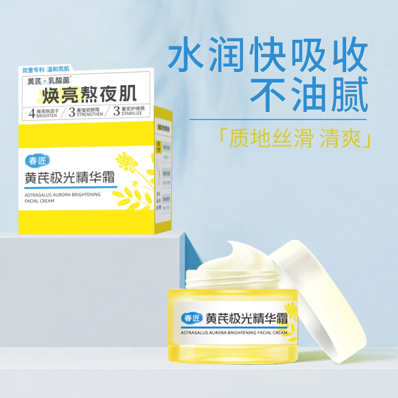 📚 春匠黄芪极光精华霜补水保湿霜敏感肌舒缓清爽提亮暗沉面霜不油腻