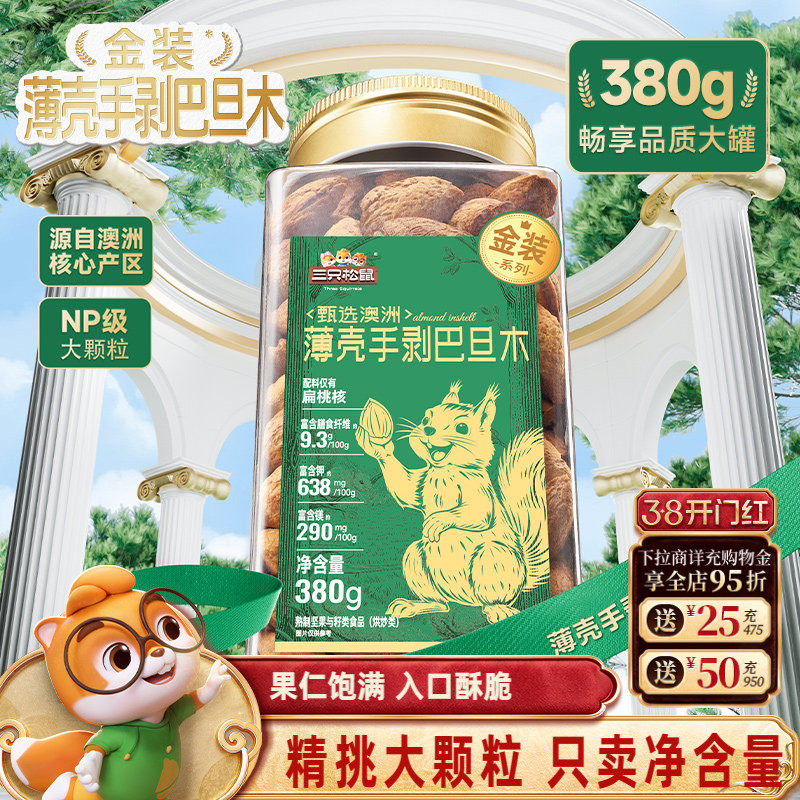 🍀「三只松鼠金装手剥巴旦木🍪健康早餐种草记」券后价10.9,坚果控的必入美食!