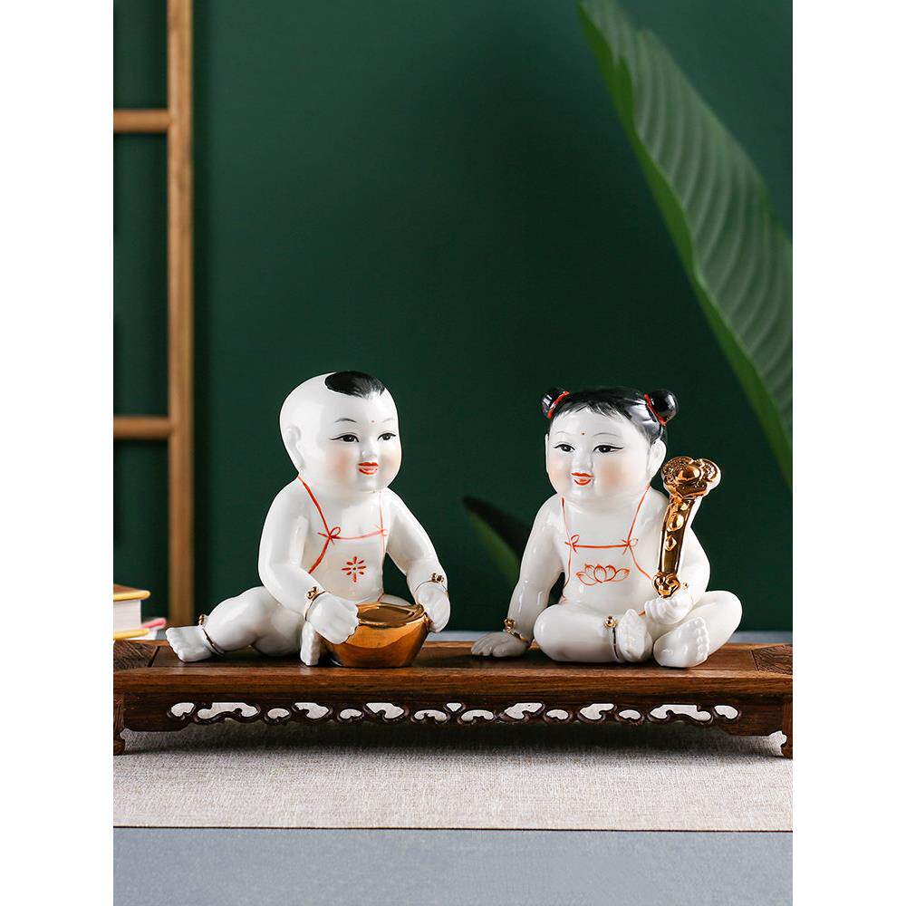 📚 陶瓷金童玉女情侣童子童女结婚压床礼物家居添丁婚房摆件娃娃一对
