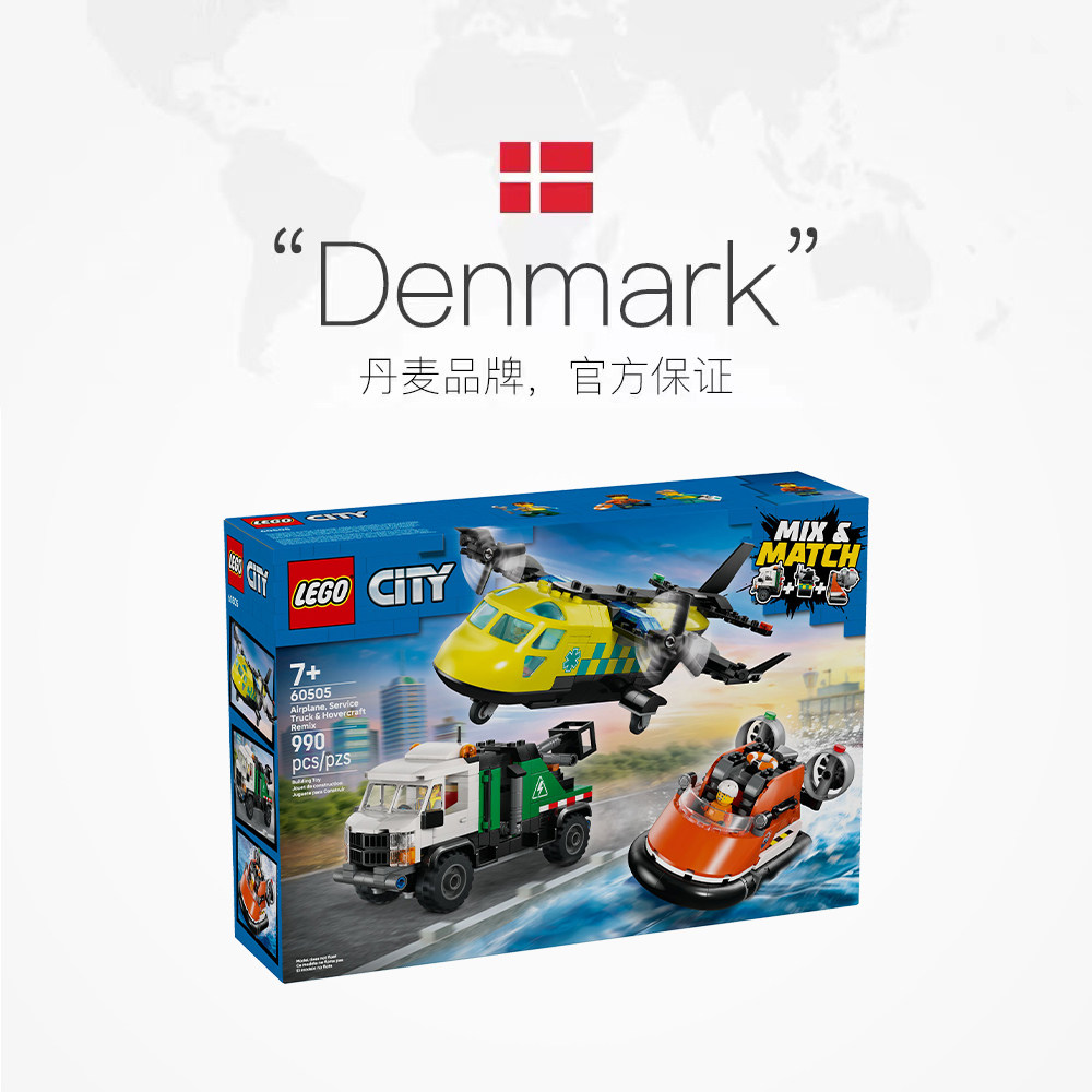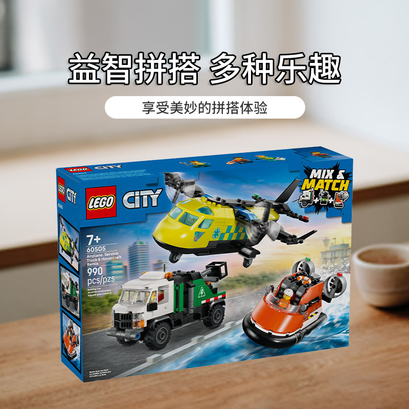 📚 【自营】LEGO乐高城市系列60505飞机 工程车和悬浮船组合积木玩具