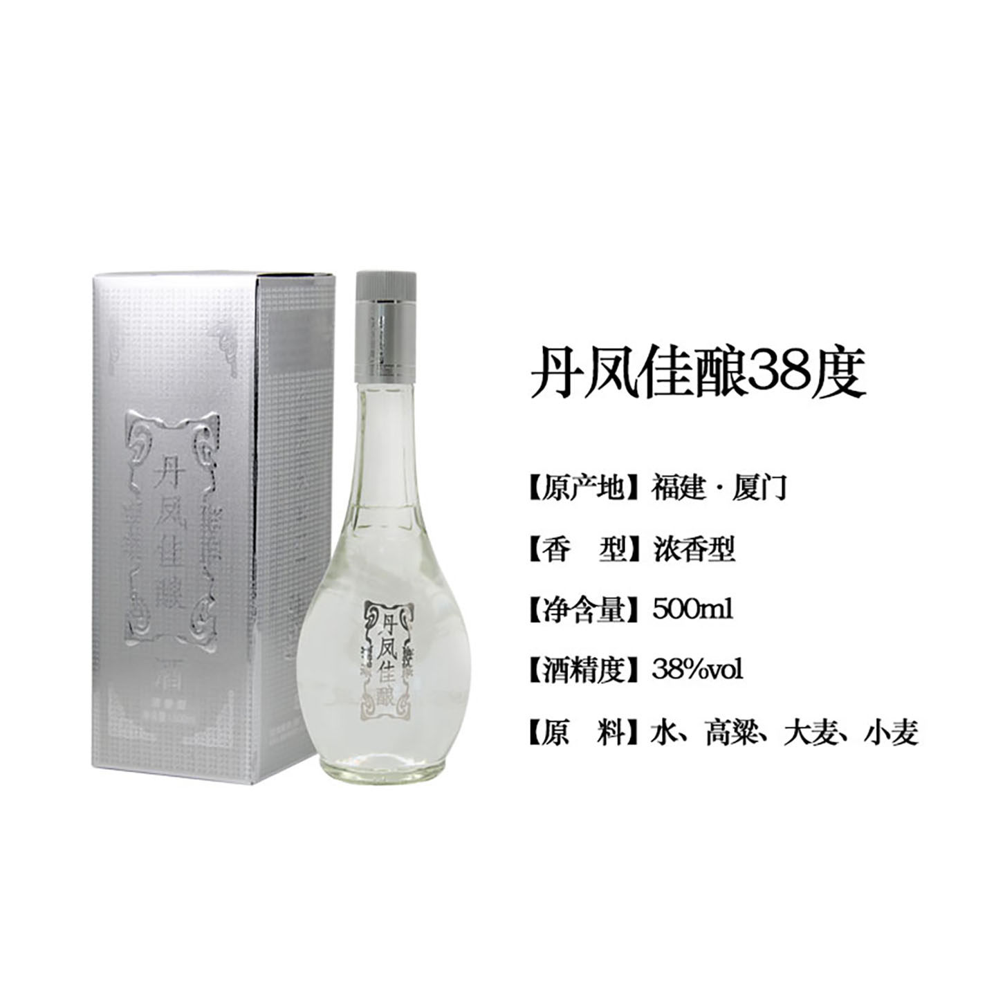 📚 厦门银丹凤佳酿38度浓香型白酒500ml/瓶纯粮食酒高粱酒1斤礼盒装