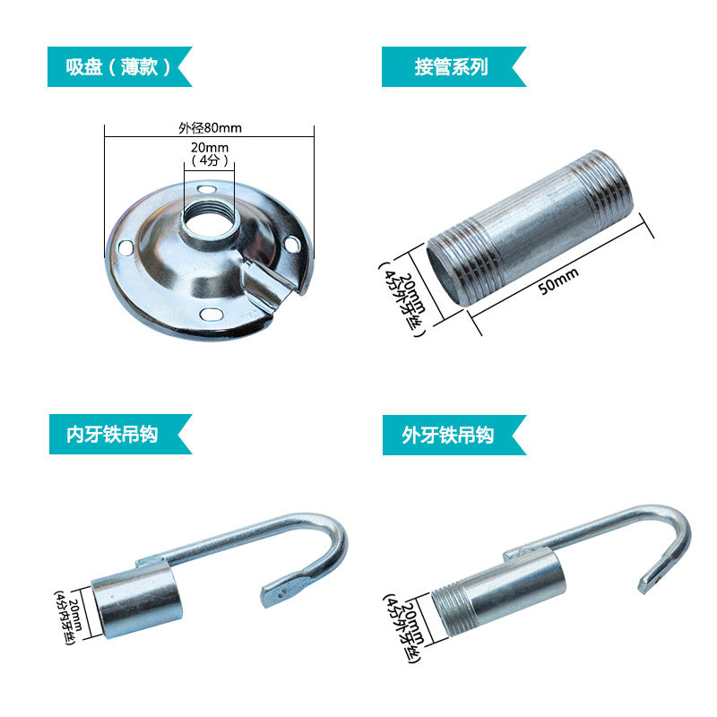📚 螺口灯头E27E40灯泡球泡灯底座挂钩吸盘工矿灯灯具配件各尺寸灯杆