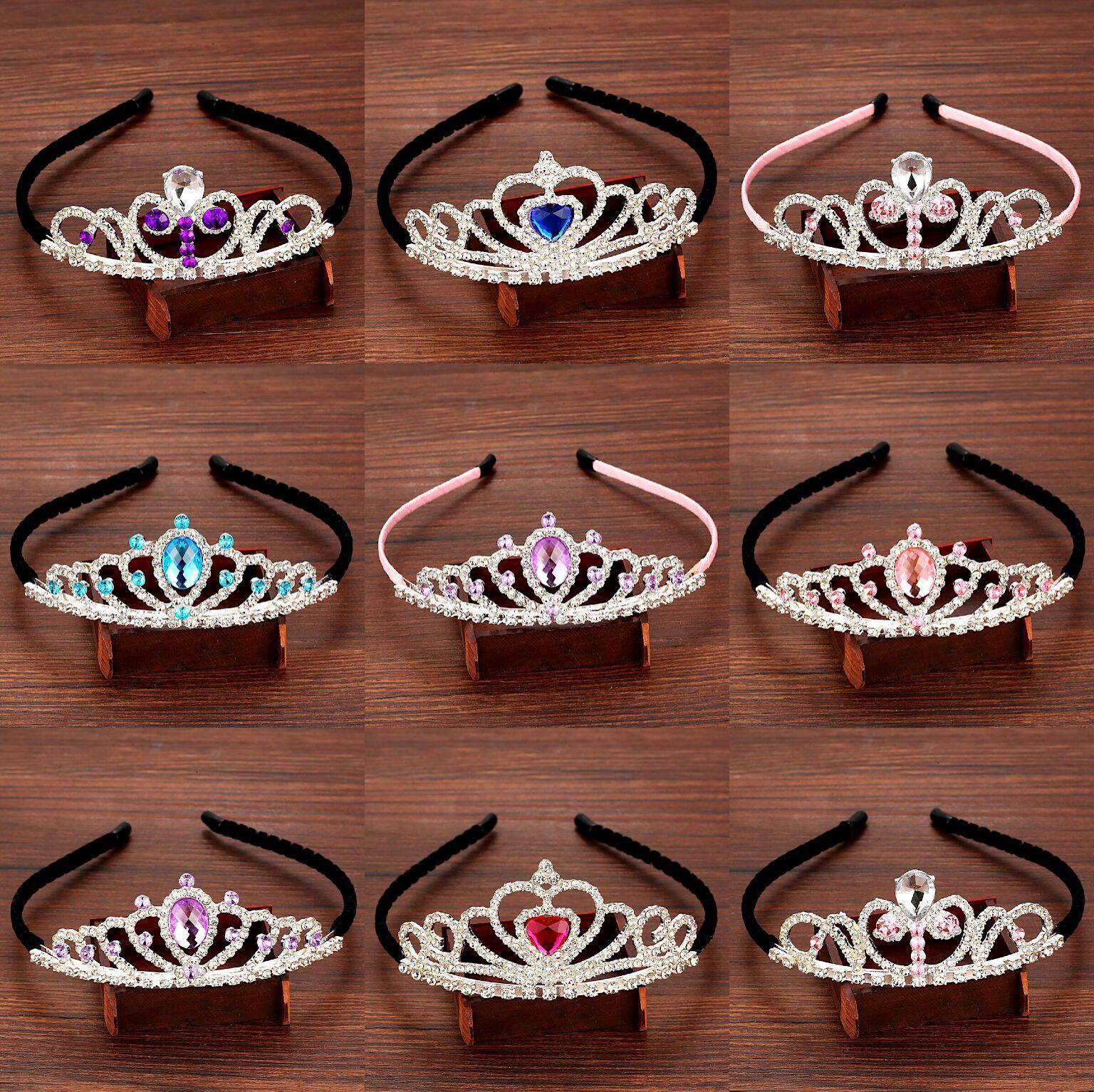 📚 水钻发冠头饰儿童皇冠发饰冰雪奇缘公主爱心发冠女童发箍发卡包布