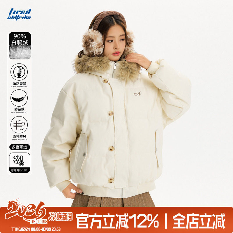 📚 TIRED美式90白鸭绒毛领连帽羽绒服冬季情侣款宽松保暖加厚外套潮