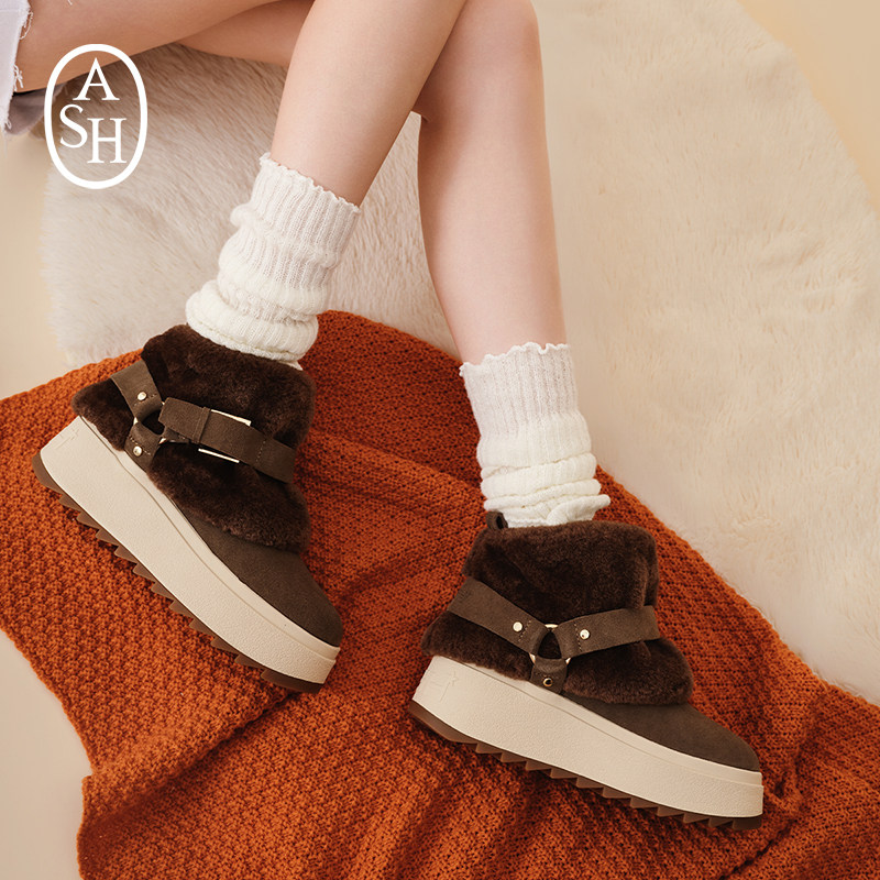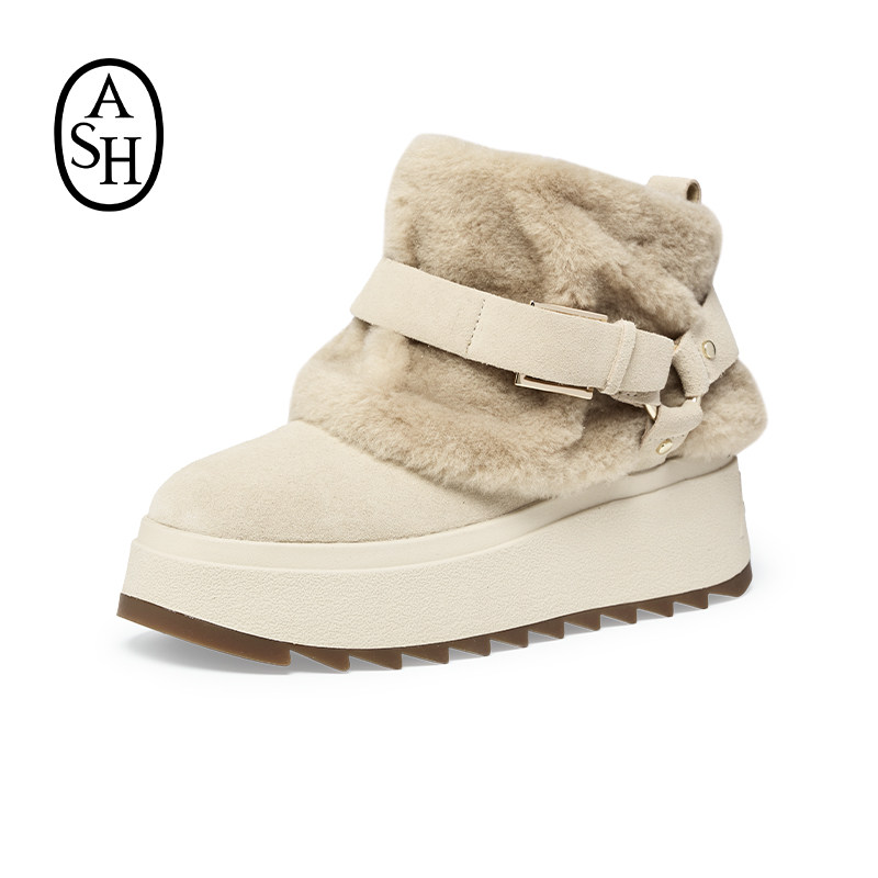 📚 ASH女靴2025秋冬MOONRISE毛毛拼接雪地靴女圆头厚底增高短靴