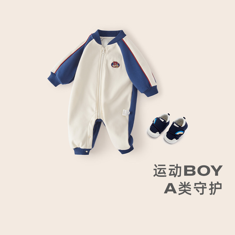 📚 男宝宝连体衣婴儿男幼童哈衣运动帅气幼童宝宝薄绒新生儿冬装爬服