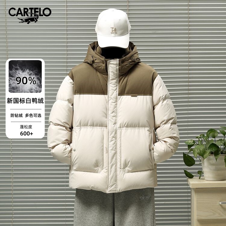 📚 卡帝乐鳄鱼男士连帽羽绒服加厚拼接款2024年冬休闲面包羽绒外套
