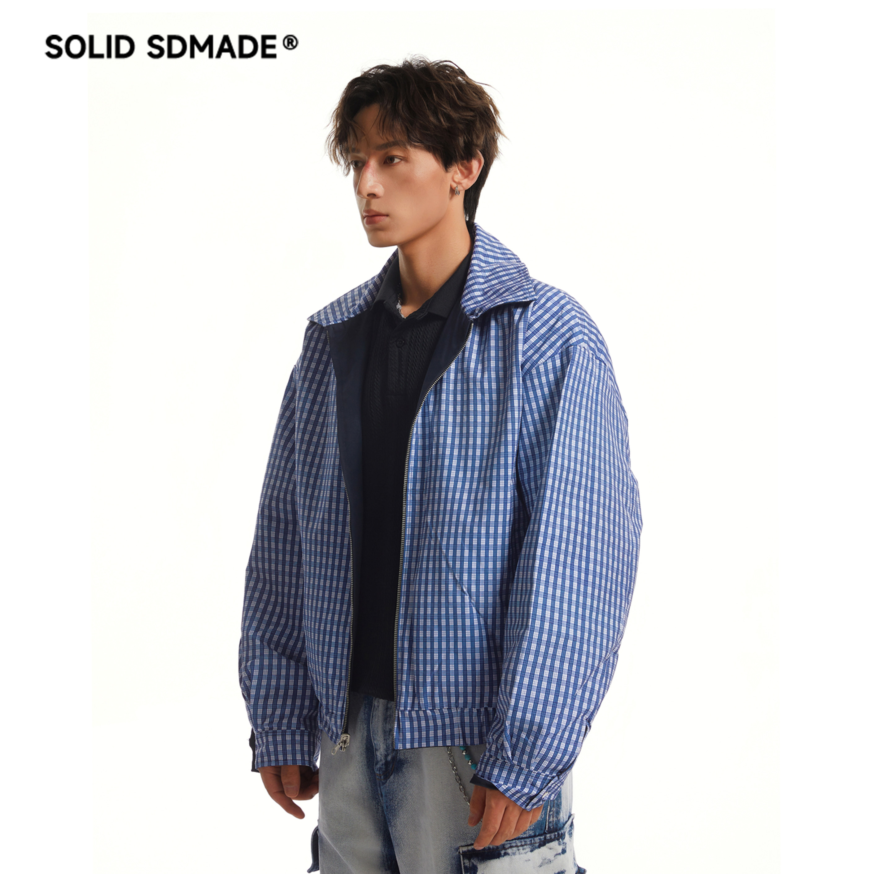 📚 SOLID SDAMDE 美式休闲双面穿翻领夹克男女春秋潮牌复古工装外套