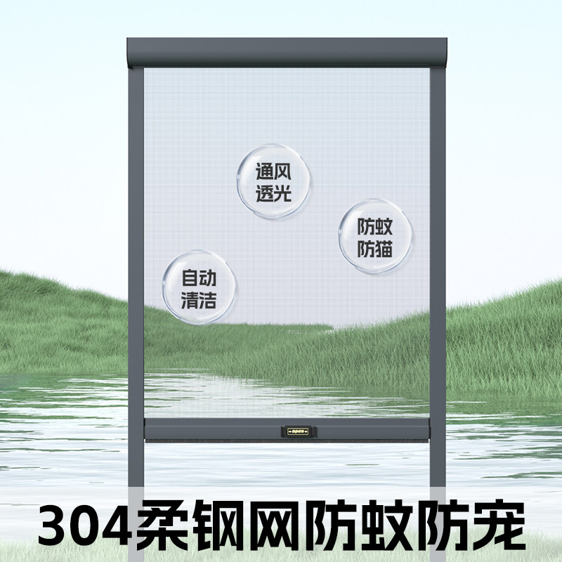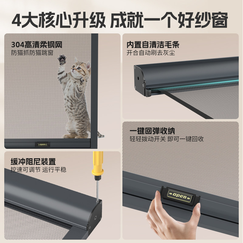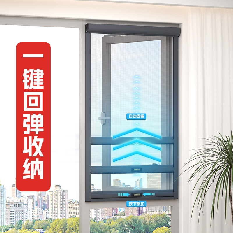 📚 隐形纱窗伸缩推拉式左右上下回卷折叠窗纱铝合金框防蚊纱窗网自装