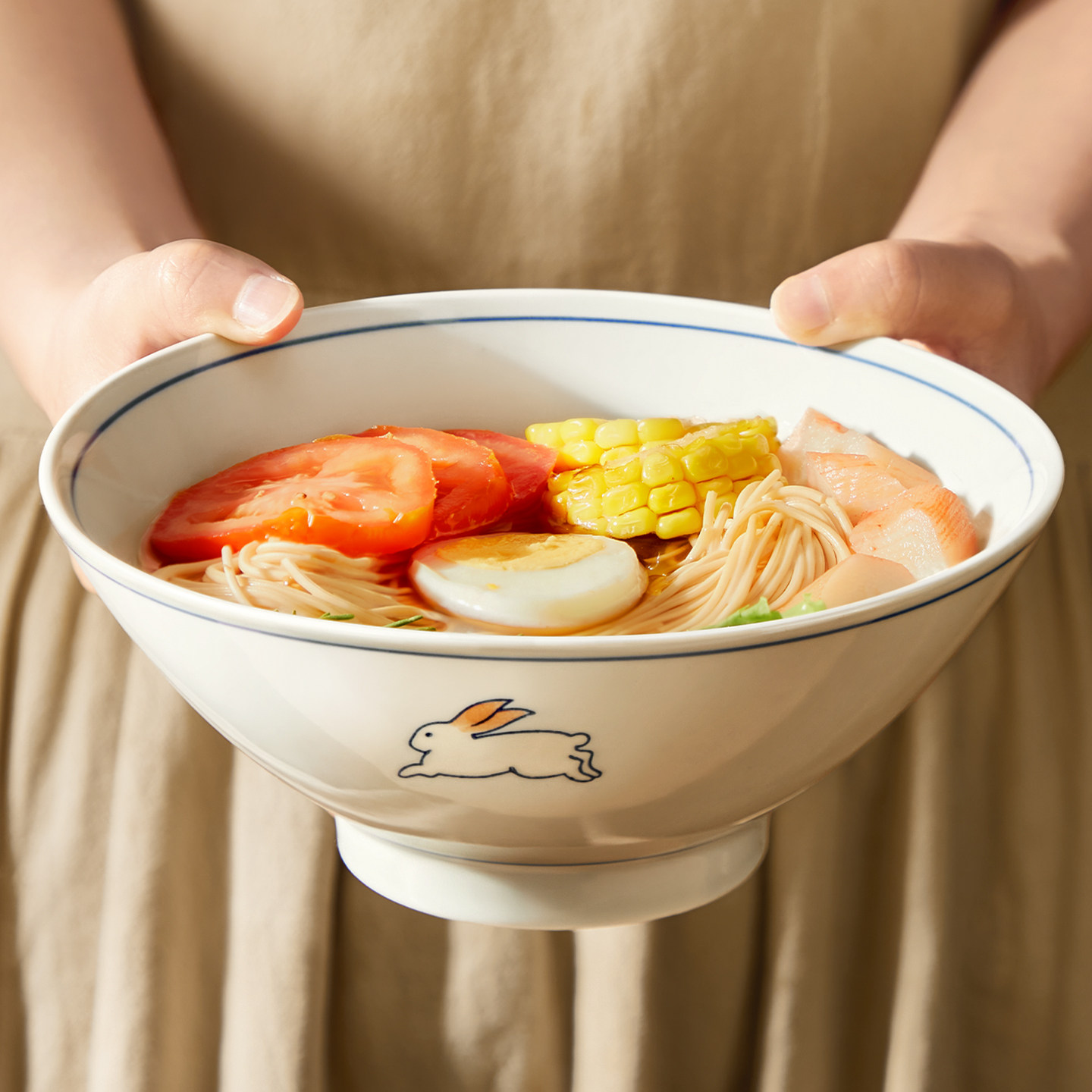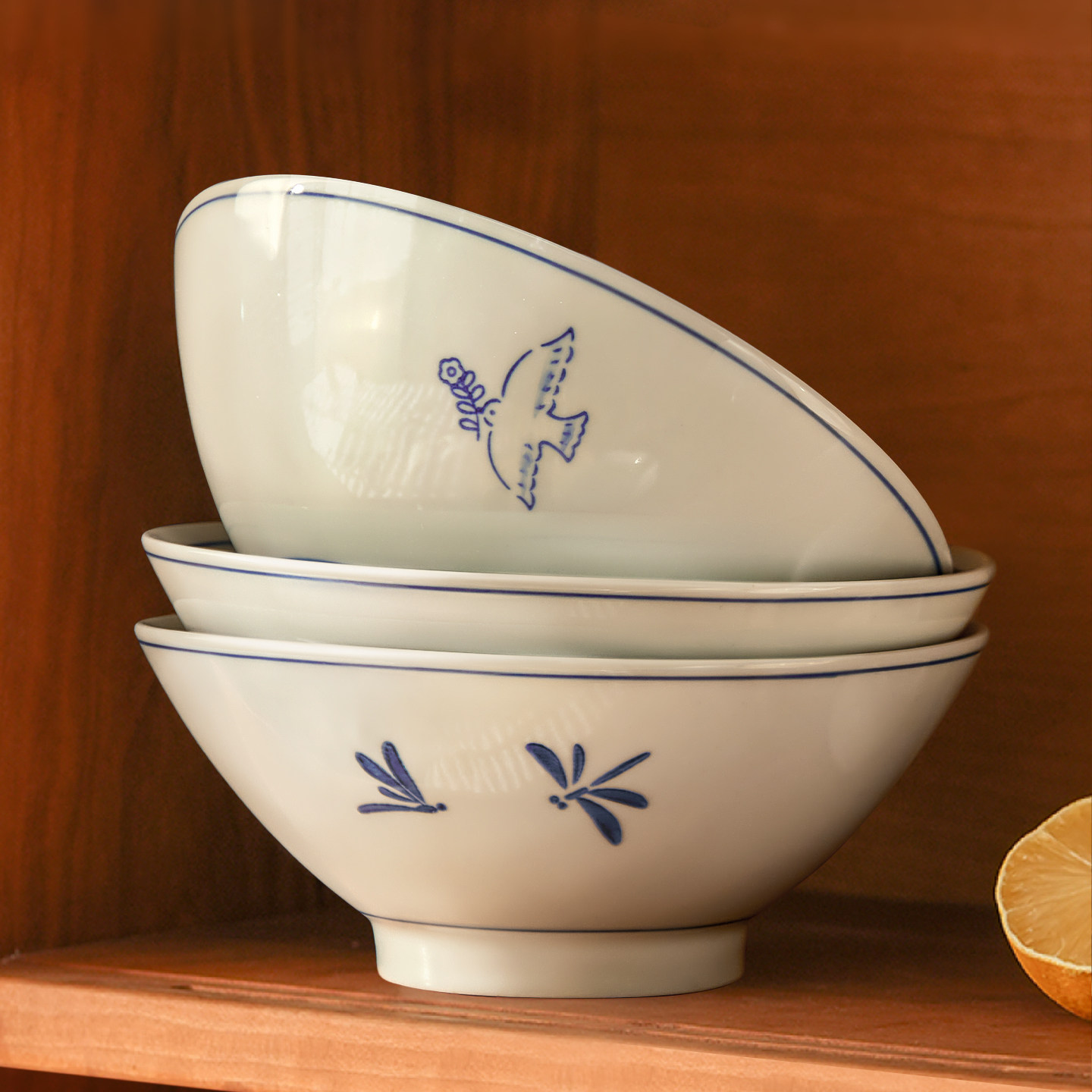 📚 中式陶瓷斗笠面碗家用新款釉下彩拉面碗好看的汤面碗大号吃面大碗