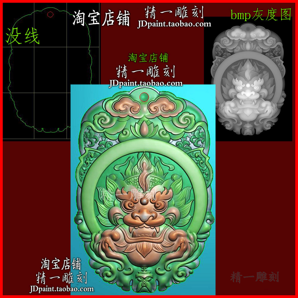 📚 jdp格式A-2431仿古兽头龙头平安牌玉木浮mm精雕刻图bmp灰度图