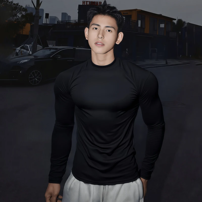 📚 秋季新款男士速干健身插肩长袖t恤透气运动休闲跑步弹力健身衣