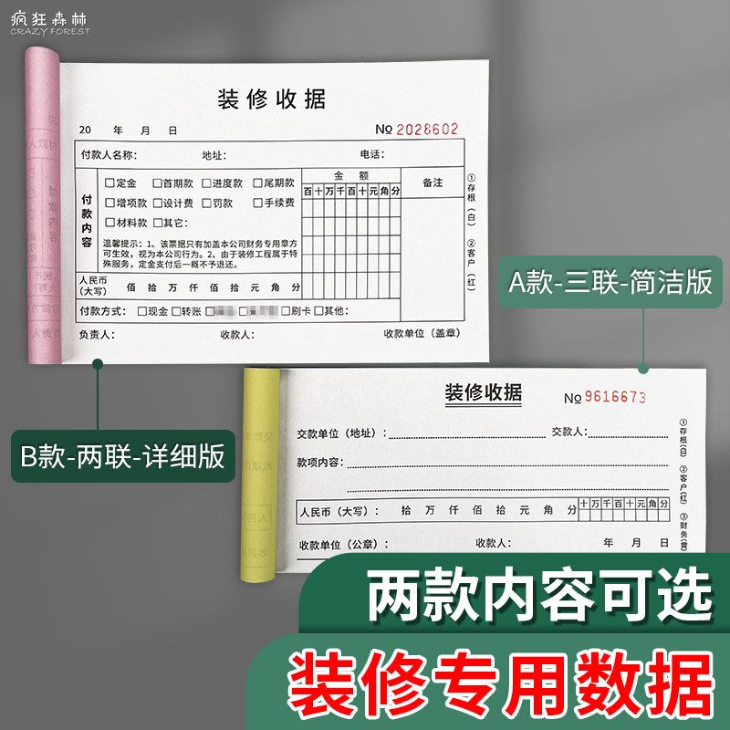 📚 装修收据二联装修收款收据单收条装修合同工装家装装饰公司收据三联无碳复写纸收据装饰装修公司专用收款收据