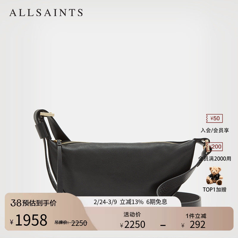 📚 ALLSAINTS女士斜挎包时尚拉链牛皮便携包袋2025秋季W301XB