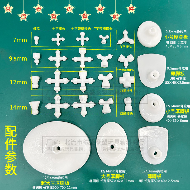 📚 棉花娃娃骨架DIY塑胶配件7/9.5/12/14mm零散无声骨粒各类接头脚板