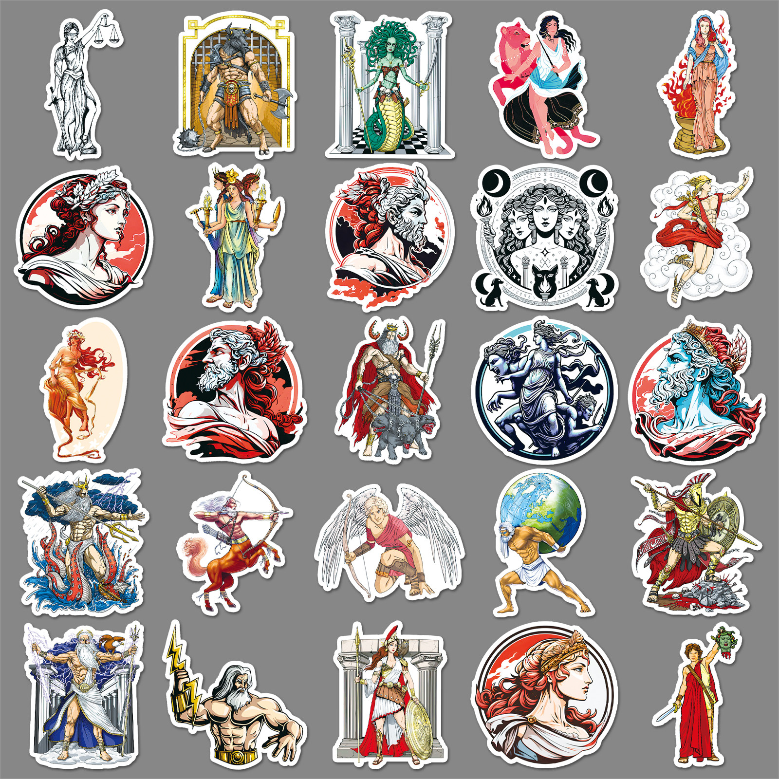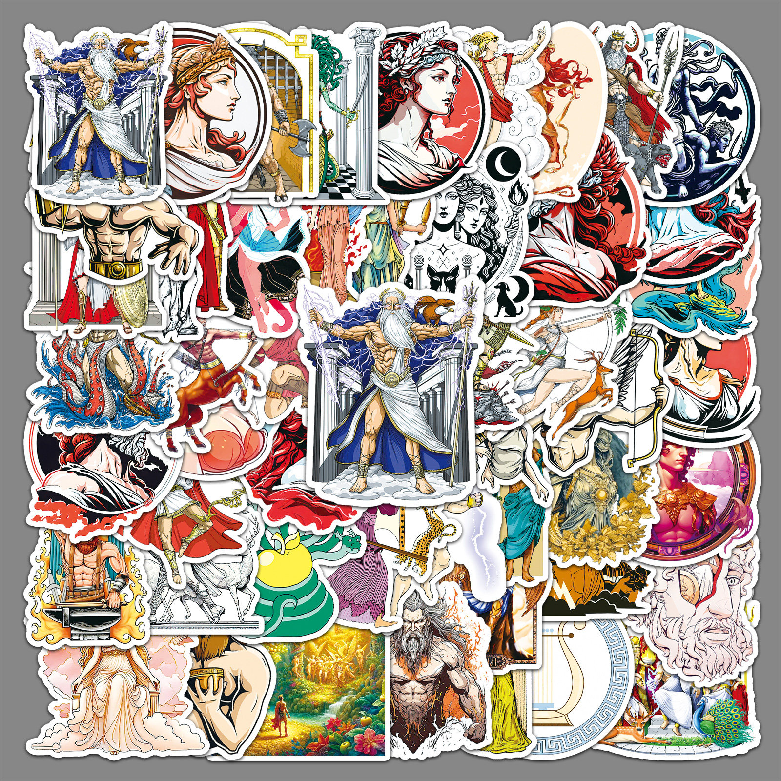 📚 51张古希腊神话人物贴纸个性潮玩西方神仙涂鸦冰箱头盔摩托车贴纸