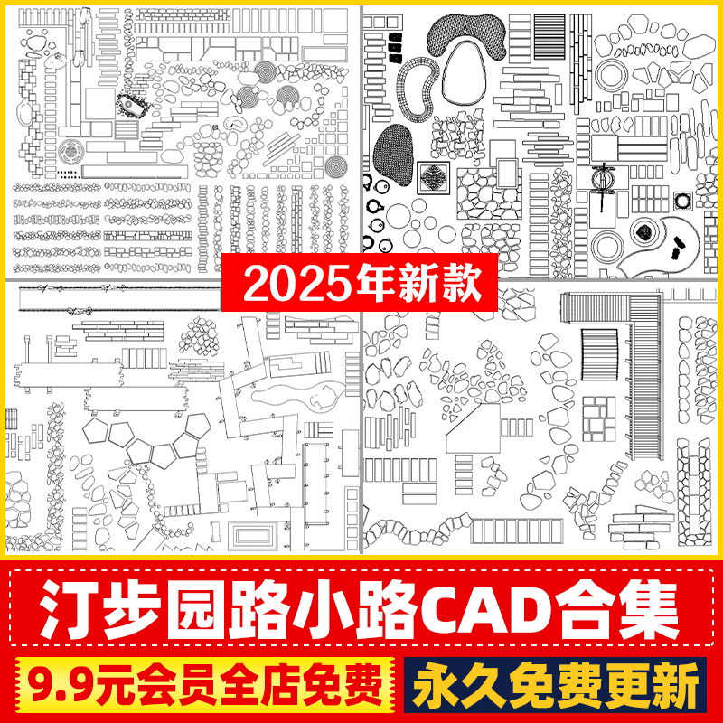 📚 园林景观公园庭院园路小路踏步步道新中式铺装汀步cad图库施工图
