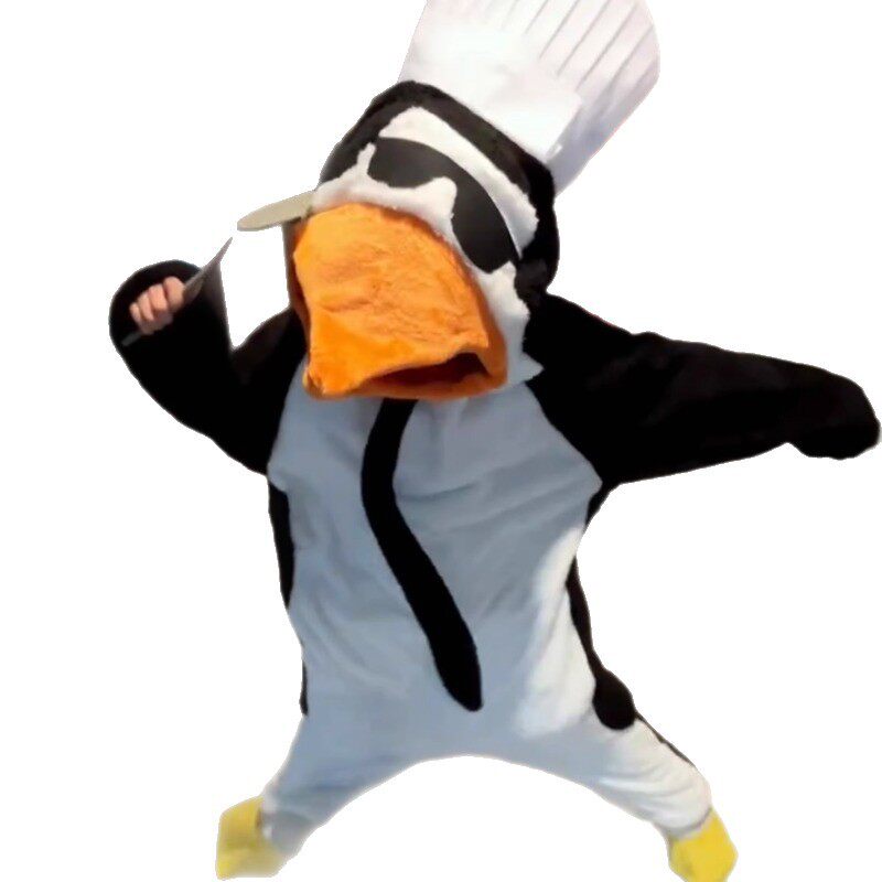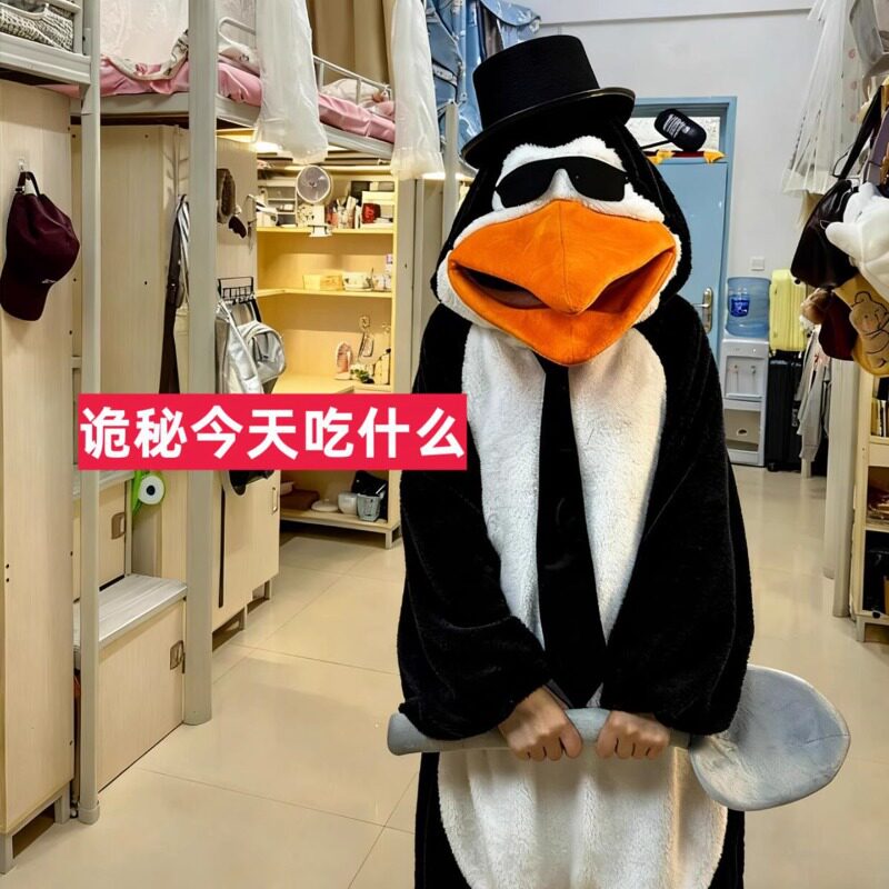 📚 高雅人士恶俗企鹅服连体睡衣女秋冬季珊瑚绒加绒加厚卡通搞怪家居