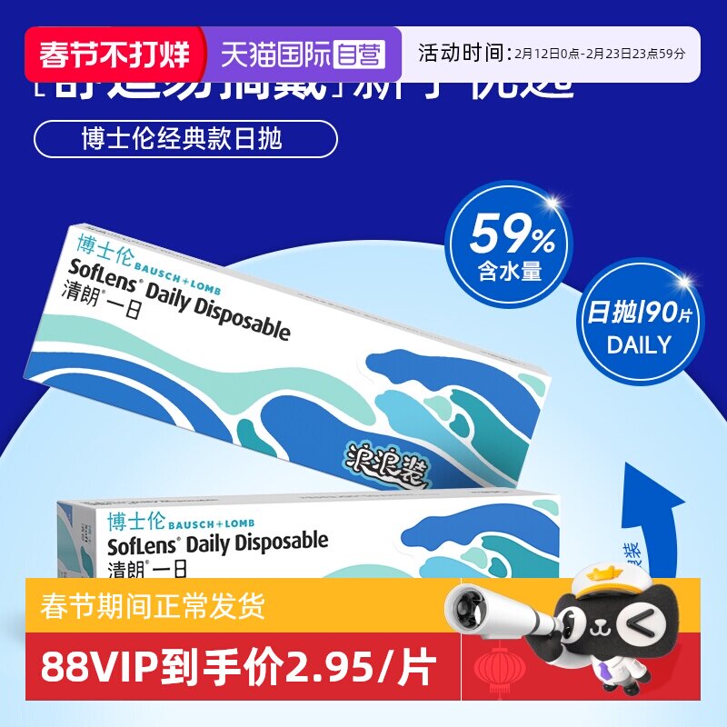 📚 【自营】博士伦隐形近视眼镜日抛90片透明片一次性带度数清朗一日