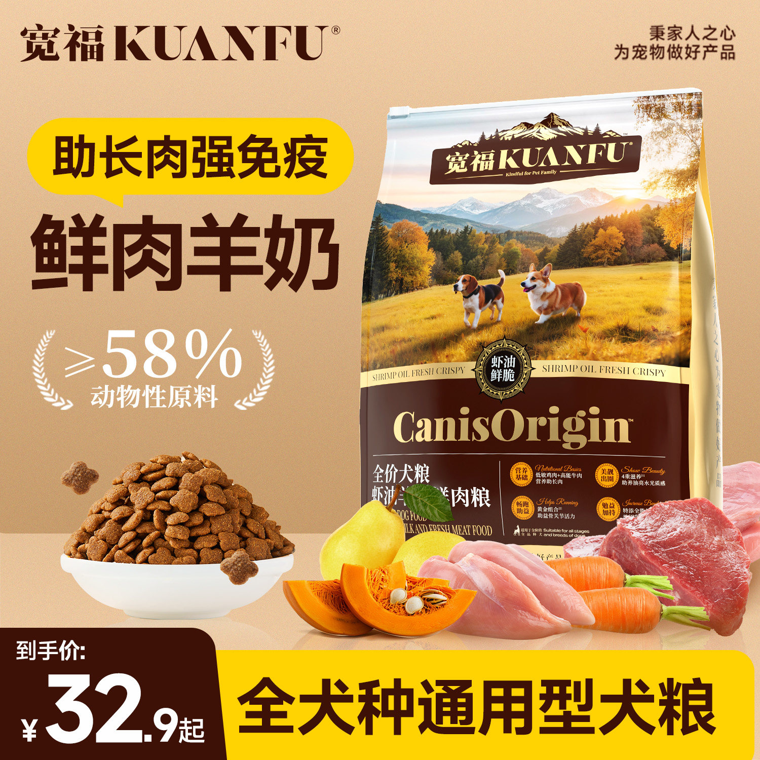 📚 宽福狗粮鲜肉犬粮泰迪比熊柯基博美成犬幼犬粮大中小型犬通用狗粮