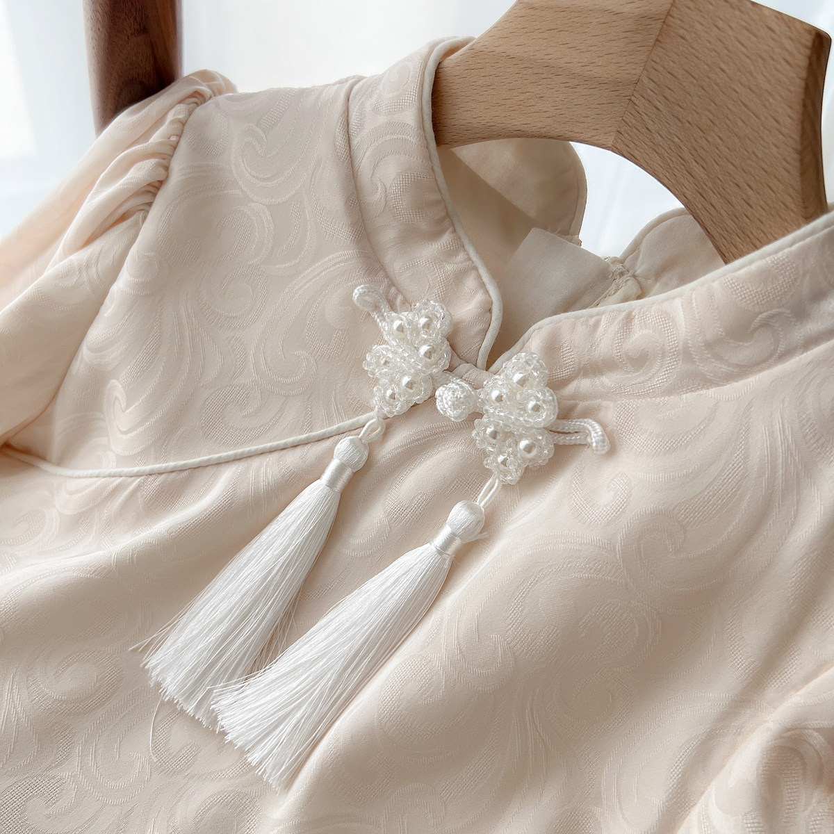 📚 女童缎面中式公主裙 儿童泡泡袖连衣裙 生日礼服裙中童 夏款童装