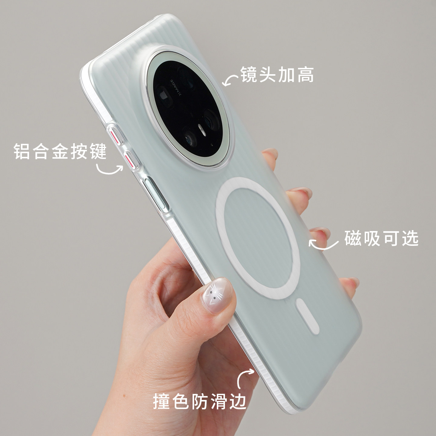 📚 [撞色防滑边]适用于华为mate70pro+磁吸手机外壳酷安酷品60超薄新款防摔磨砂简约瓦楞半透明pc专用保护套硬壳